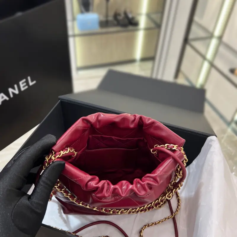 The long-awaited gold-button version of the mini garbage bag burgundy is here~ Like a ripe cherry red, you can always trust the burgundy color of Cbag. The upper body is small and cute, with a touch of playfulness and nobility, standing out from the crowd of colors. Size: 20x19x6cm