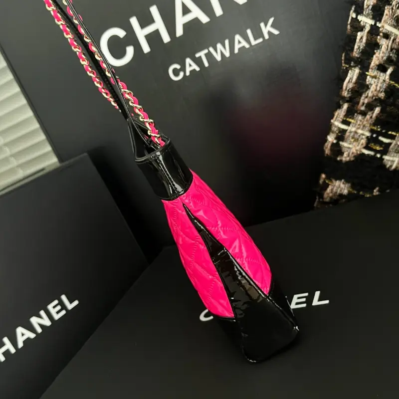 31 mini patent leather peach very special black and pink Barbie color ~ Size: 22x23x5.5cm