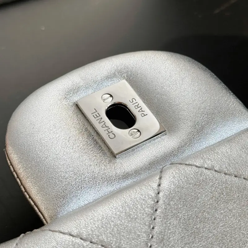 The 24c airport bag has a shiny silver sheepskin surface and a high-tech feel. Size: 40x26x12cm