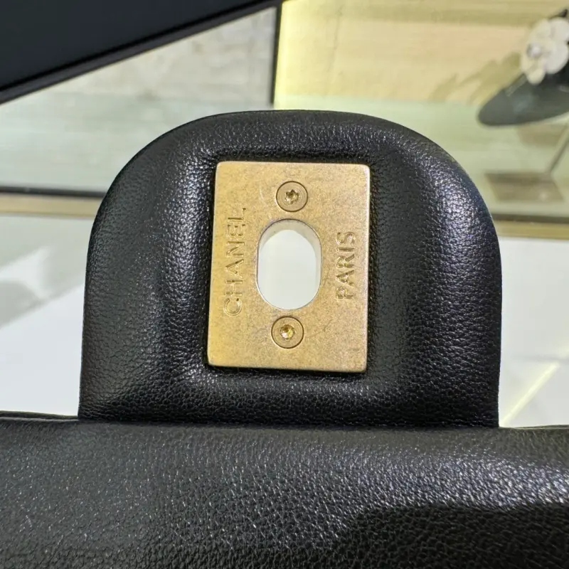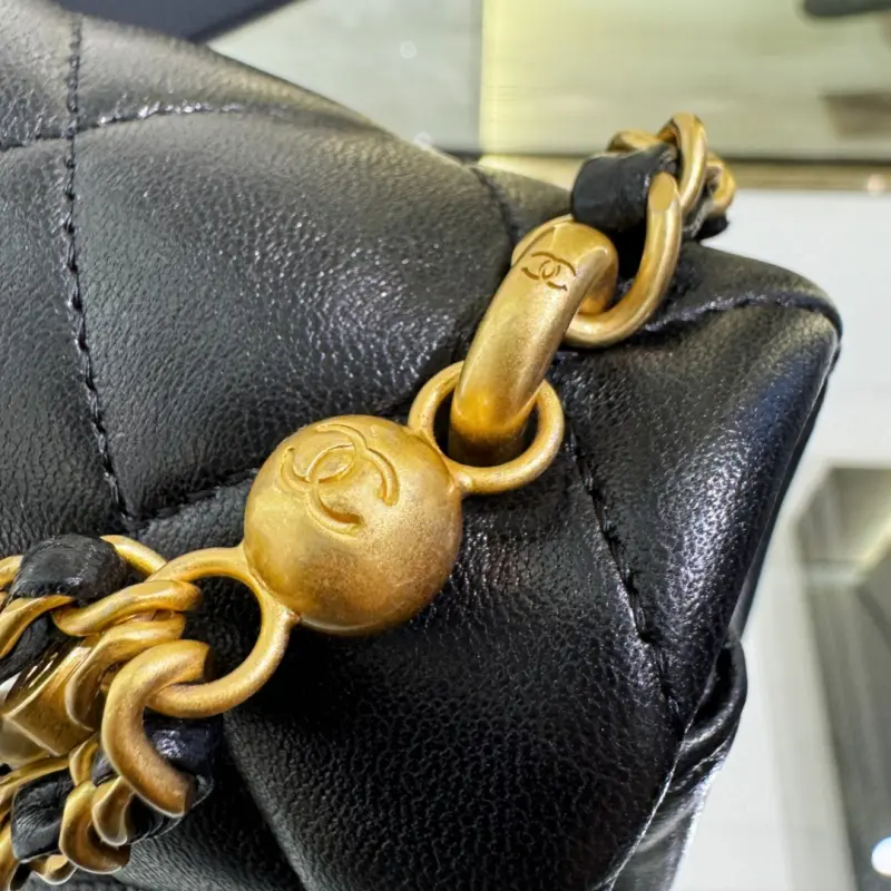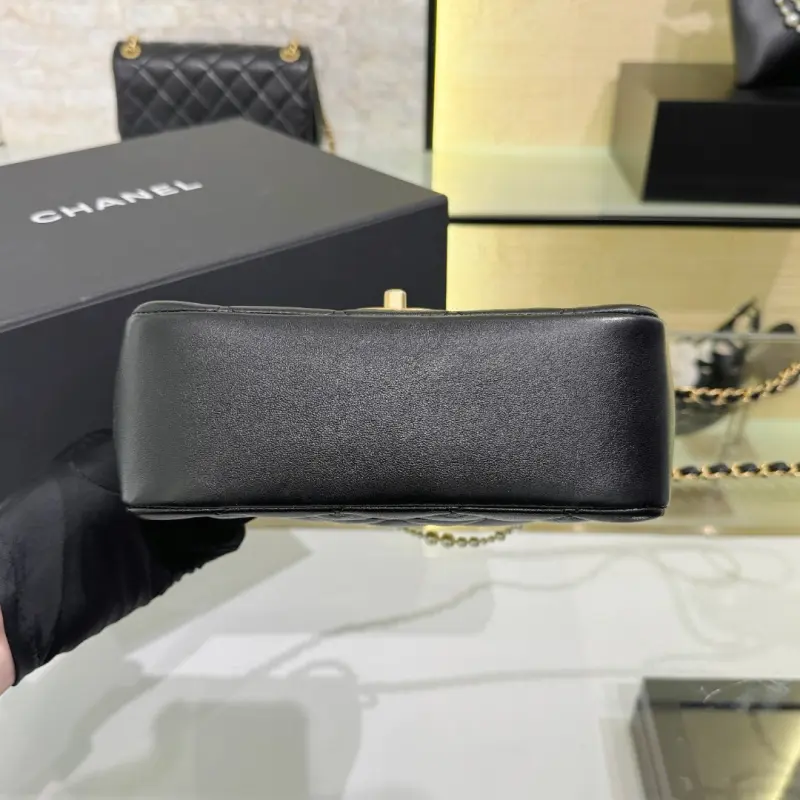 24p Pearl Chain Bag – Large – Black pearl mixed with leather chain prefix, hand-held super feeling, black classic timeless, the bag body is full of sheepskin texture light size: 14.5×19.5×7.5cm