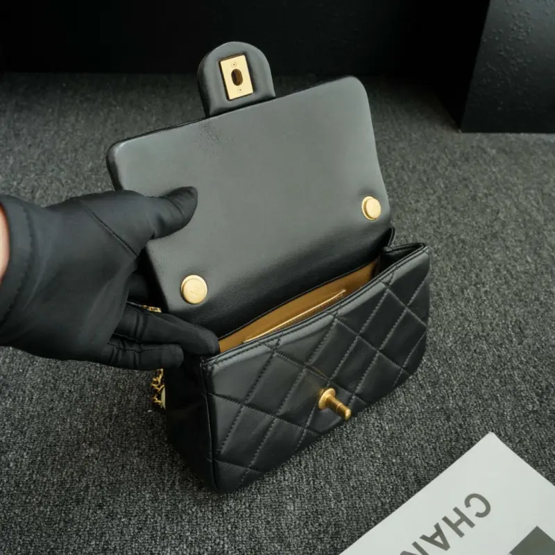 24s Double Pearl-Sheepskin-Large-Black Gold Size:13×20.5×6.5c