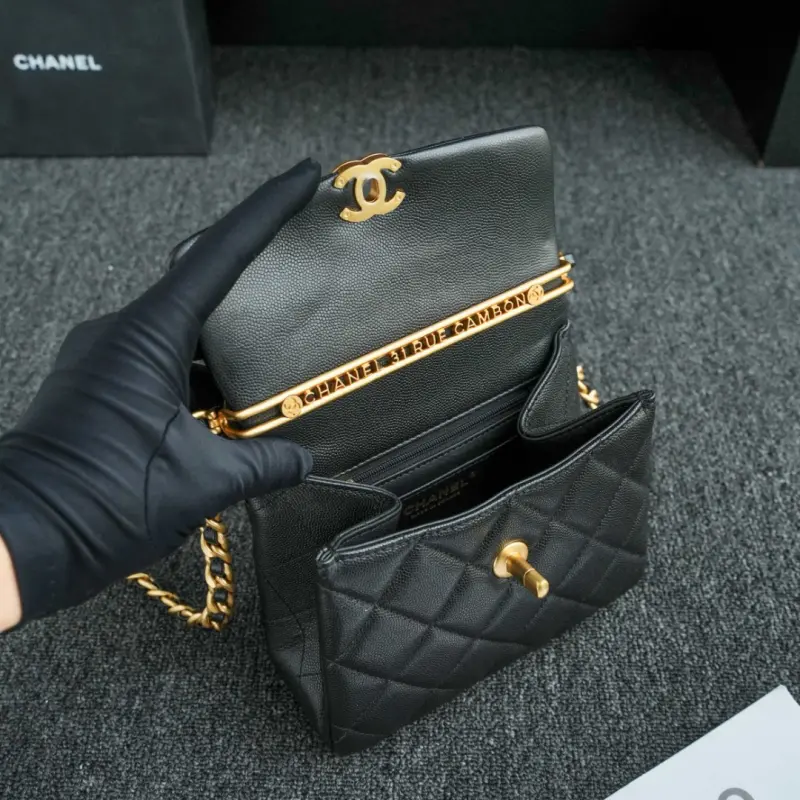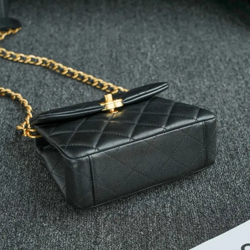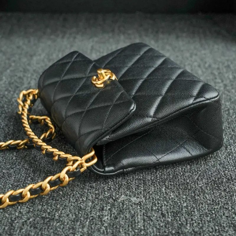 24s handle postman – lychee leather – black gold size: 15x19x7cm