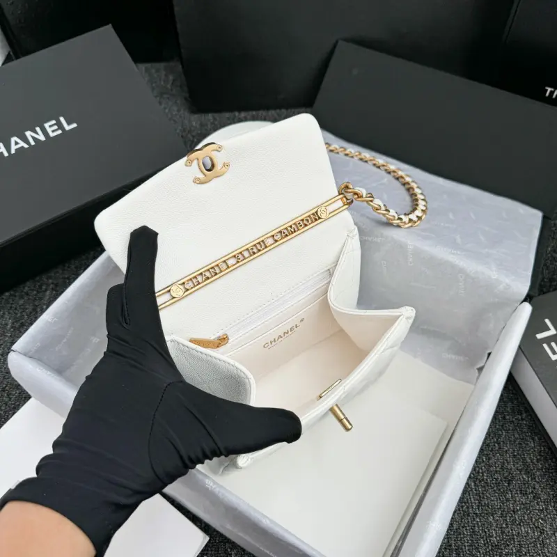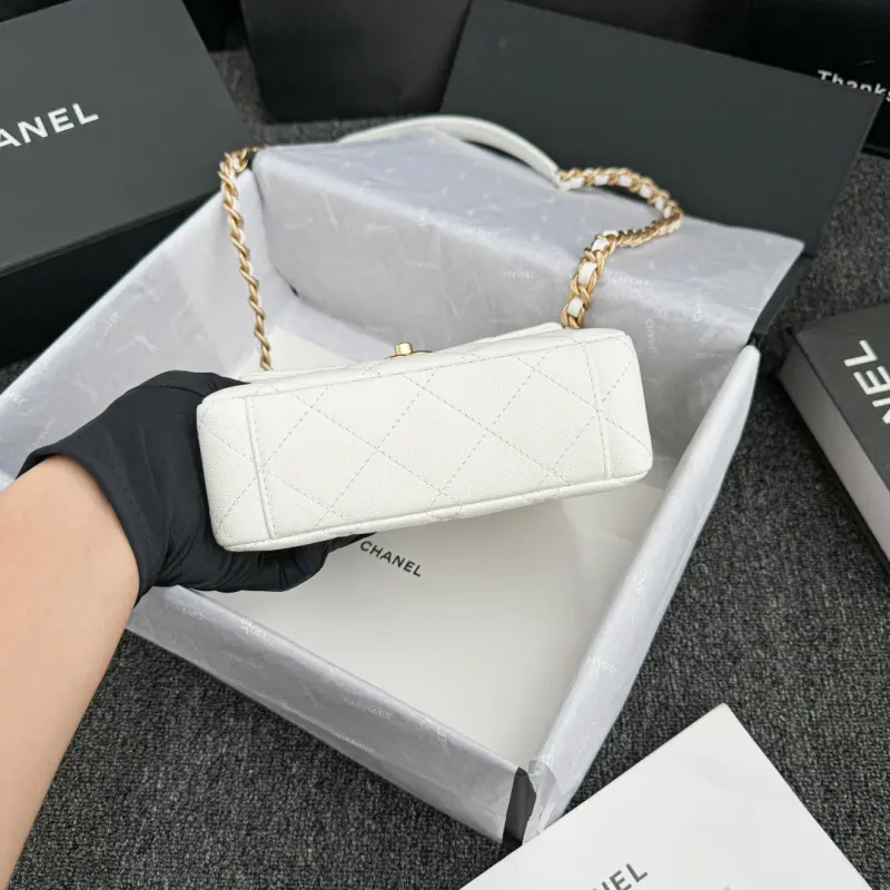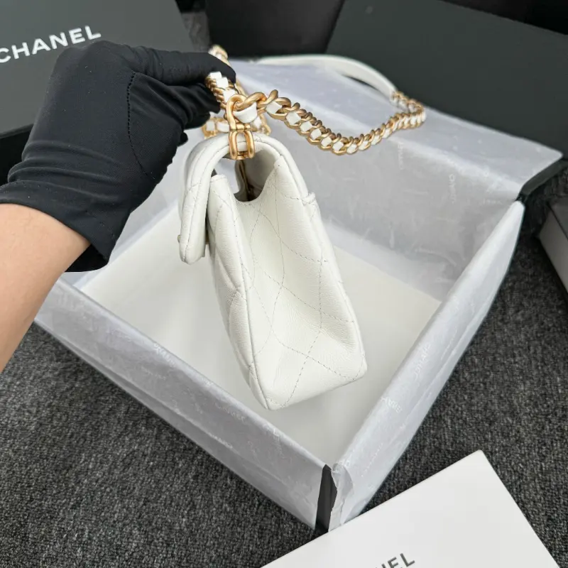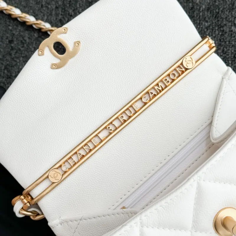 24s handle postman – lychee leather – platinum size: 15x19x7cm