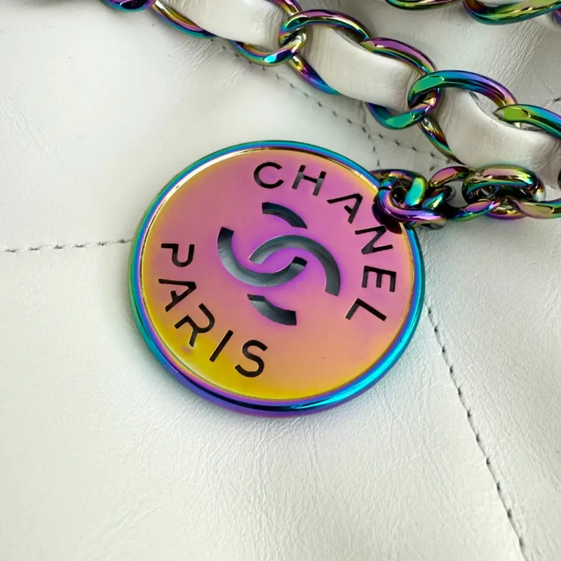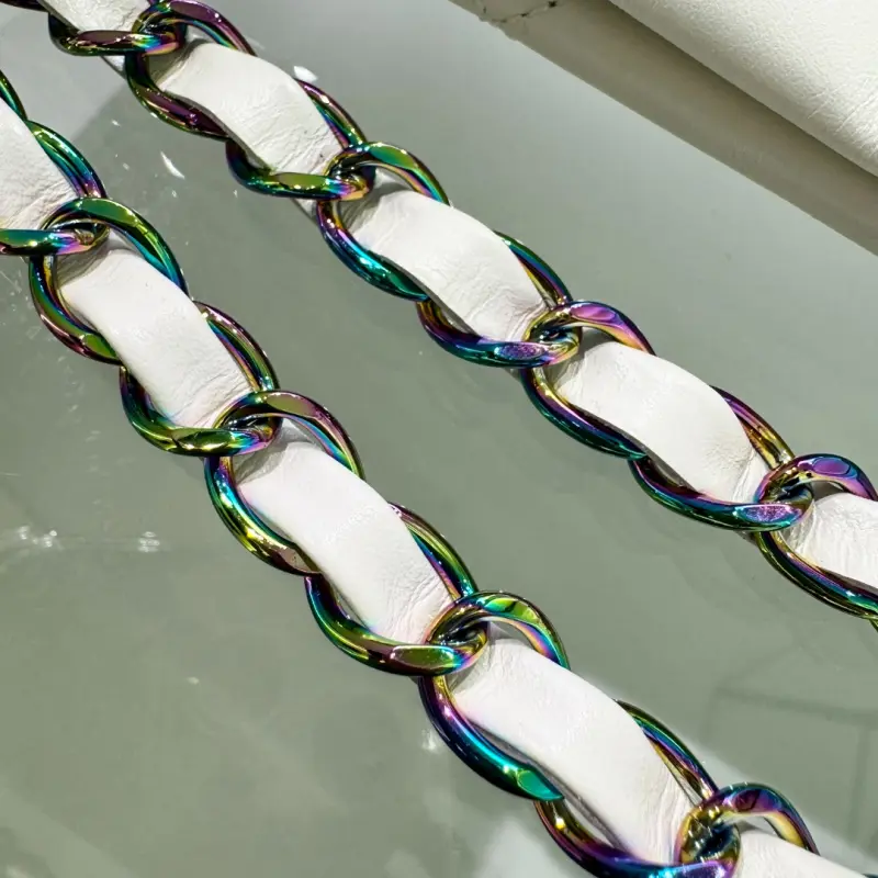 The medium white garbage bag has made a new breakthrough in the hardware color this time. The colorful hardware looks completely different in different light and angles! It’s hard not to love it. The medium size still has the same capacity. Dimensions: 39x42x8cm
