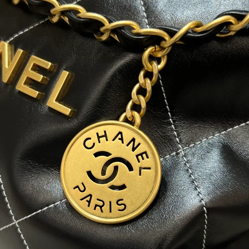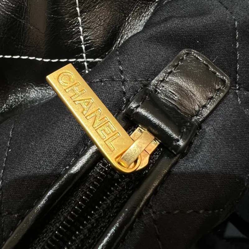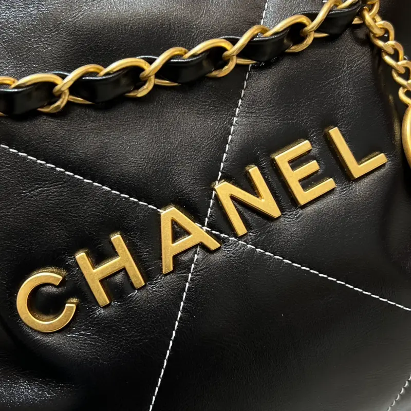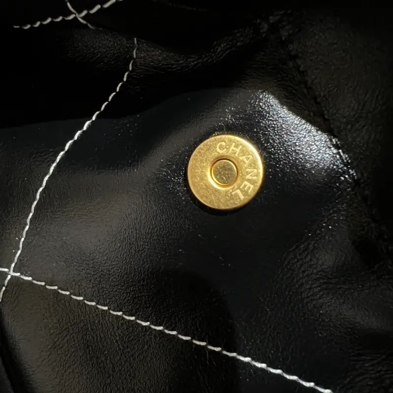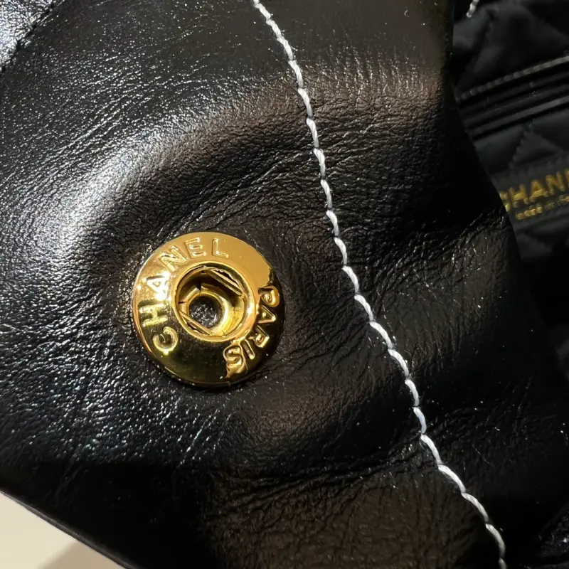 22bag black gold and white thread medium new white outer stitching, this line is very delicate, so that the black waxed cowhide bag is not so monotonous. It also looks good with black and white clothes! The more you look at it, the better it looks. Size: 39x42x8cm