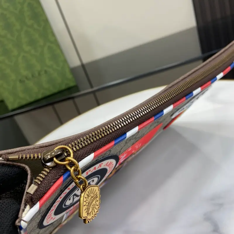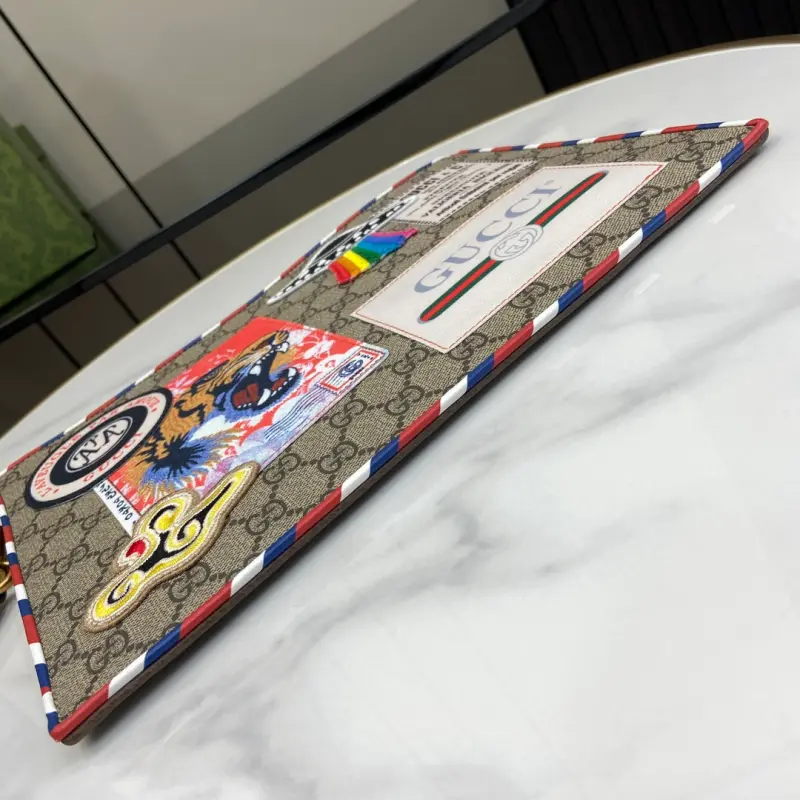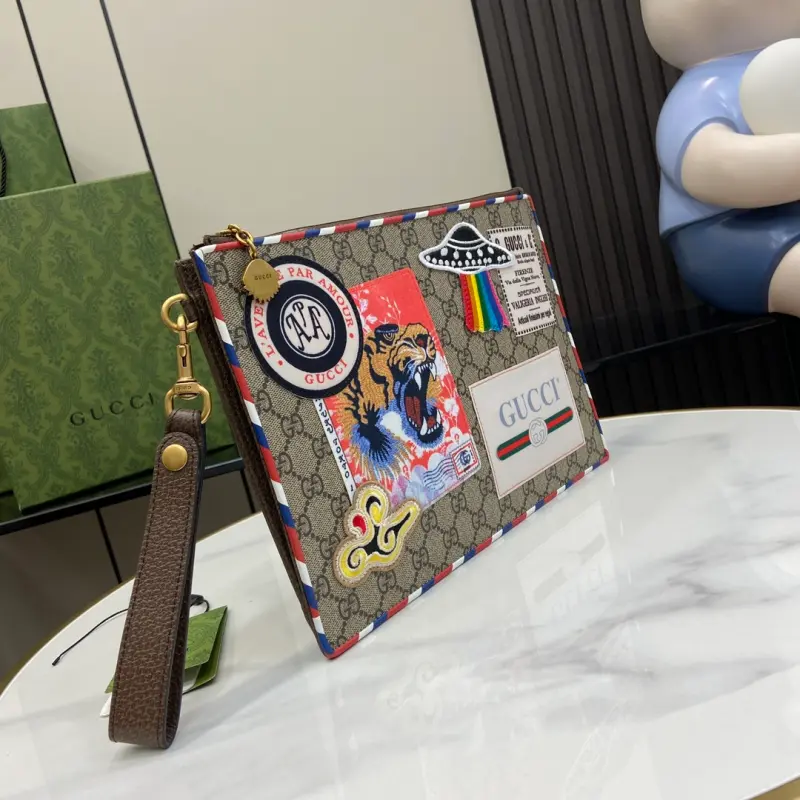 [Includes full original green box packaging] This Ophidia clutch features the GG logo, an evolution of the Gbag check that first appeared in the 1930s and has since become a Gbag staple. This new Ophidia clutch features this recognizable pattern in brown fabric. Double G hardware completes the look. Made of beige and brown GG Supreme canvas with brown leather trim, palladium-tone hardware, and the Double G. Model No. 473915. Dimensions: 30.5 x 11.5 cm. Color: Brown/Embroidered PVC.