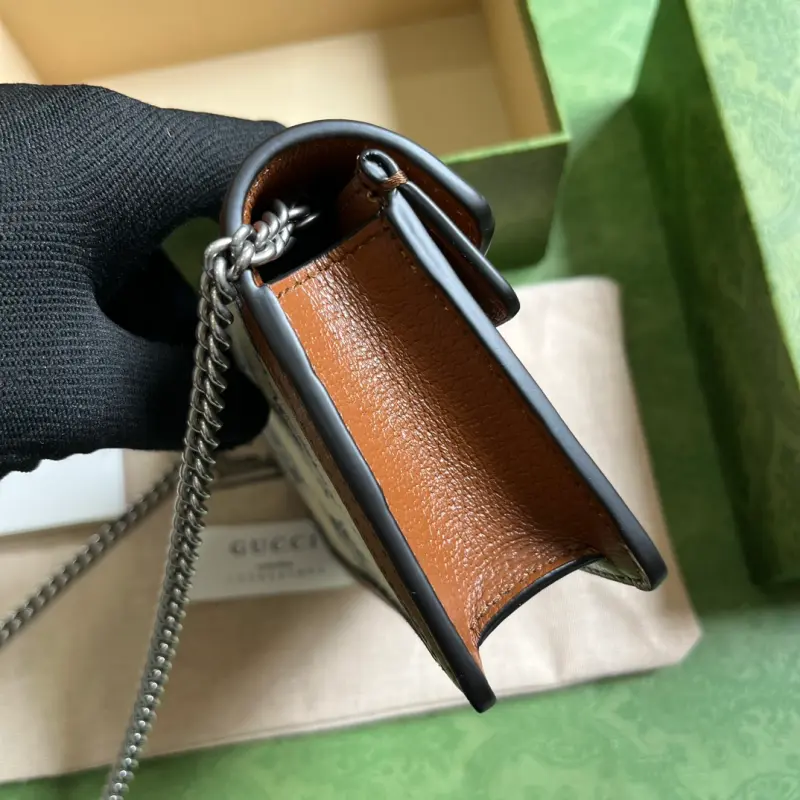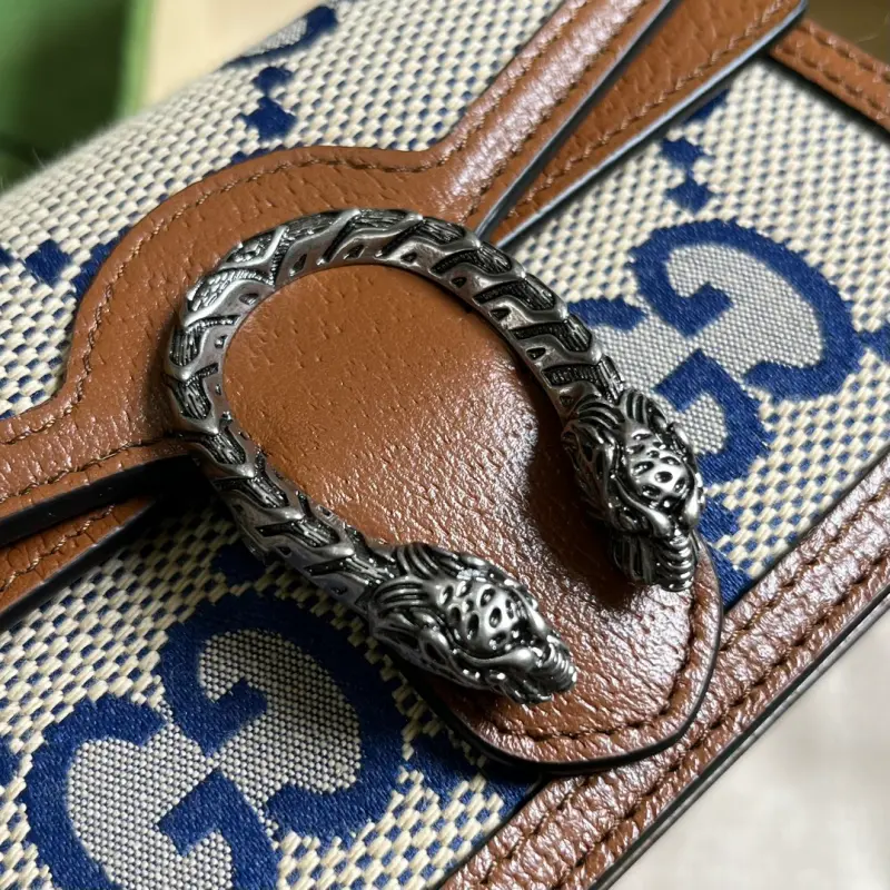 [Includes full original green box packaging] This GG Dionysus bag features a miniature Super G motif. Featuring a miniature size and an oversized logo, the Dionysus exudes a vintage feel. This compact accessory reflects the brand’s deep fascination with history. Each collection explores different eras and periods, blending vintage elements with archival pieces or contemporary details to create timeless, reimagined designs. Made of camel and ebony Super G canvas. Brown leather trim. Model No. 476432. Dimensions: 16.5 x 10 x 4 cm. Color: Brown/Blue G canvas.