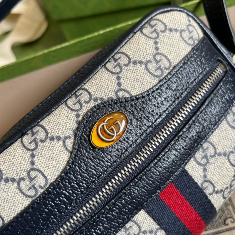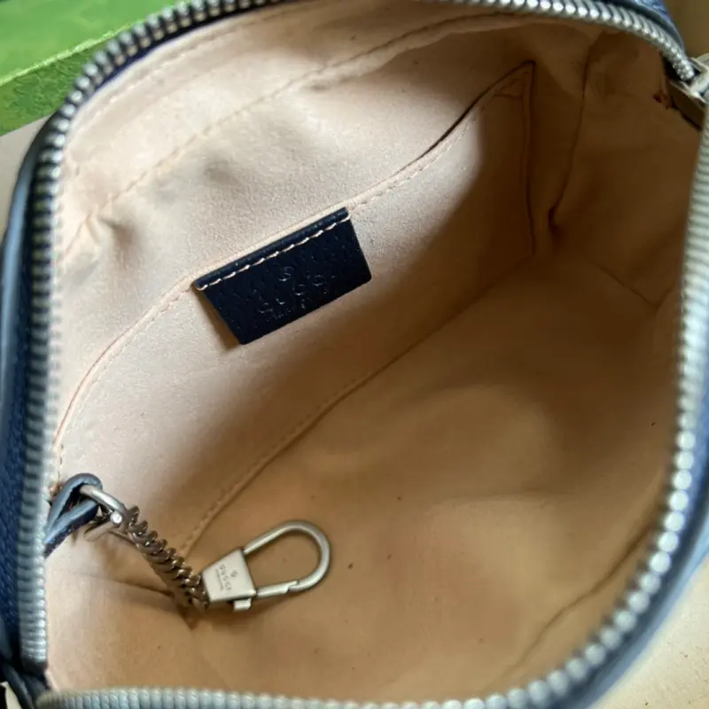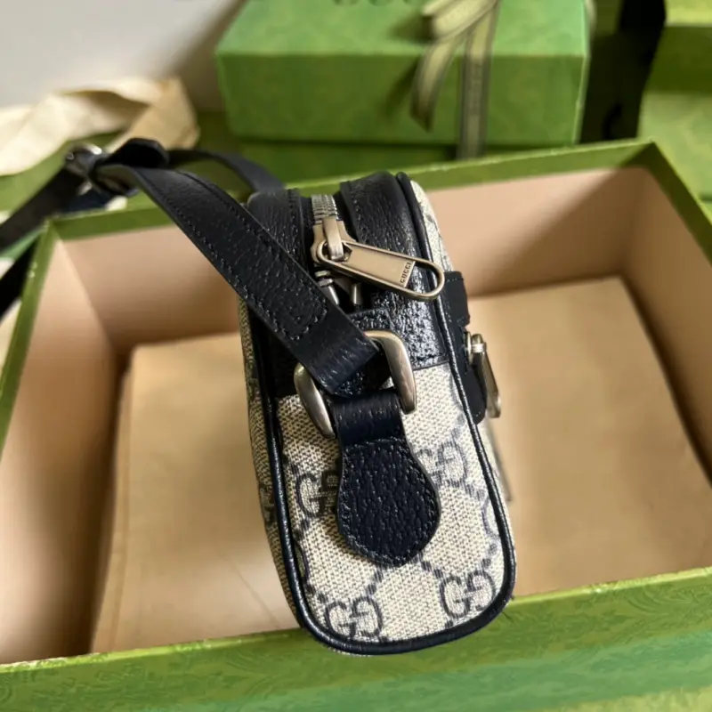 This Gbag Meo Vintage crossbody bag, complete with original green packaging, stands out from the Gbag Infinity Collection, infusing retro style with modern design. The mini bag features an oval leather tag and the brand’s signature feline head. This bag embodies all the brand’s classic elements, creating a versatile and adorable look. Model: 517350. Dimensions: 17.5 x 12 x 5.5 cm. Color: Blue/PVC