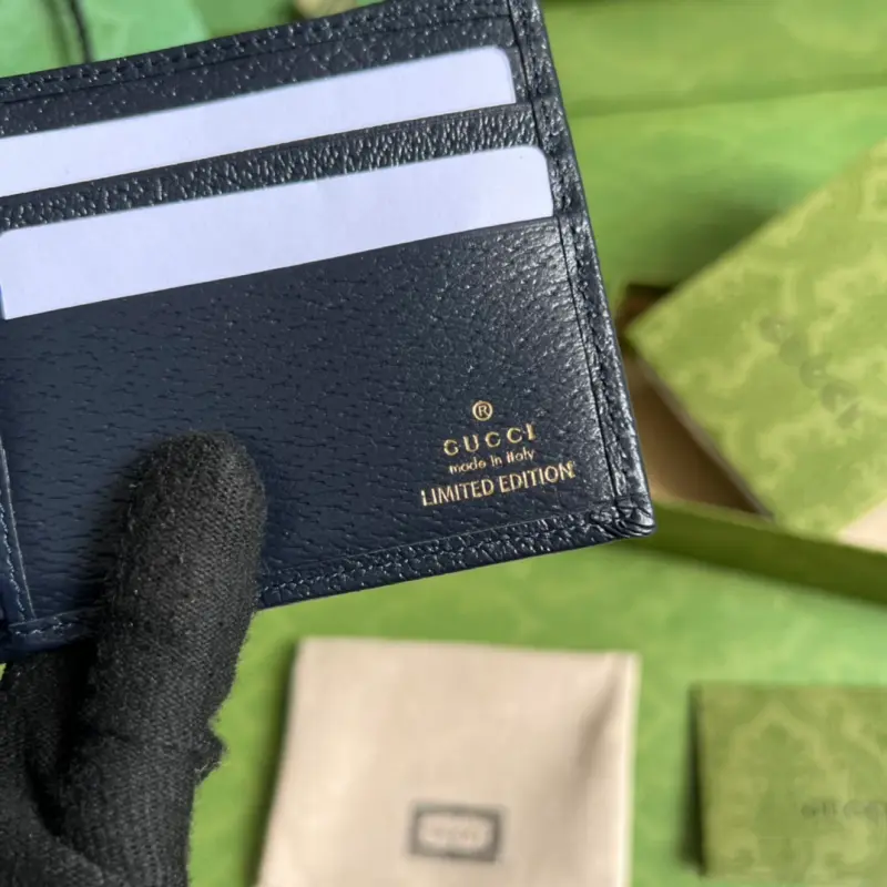 The latest wallet has arrived, complete with original green box packaging. It can also be used as a wallet, making it a practical design staple. The classic GG pattern, a signature element of the brand since the 1930s, continues to inspire new expressions nearly a century later. Model: 597606. Dimensions: 12*9.5*1.5cm. Color: Rice Rubber/Blue Leather.