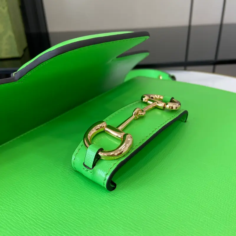[Comes with a full set of original green box packaging] [New Product] Gbag Horsebit 1955 Series Shoulder Bag. The Gbag Horsebit 1955 Series Shoulder Bag made a stunning debut in the 2020 early spring series, interpreting the classic design from a fresh perspective. This handbag continues the lines and shape of the classic items from more than 60 years ago, cleverly combining classic details with a modern spirit, and emphasizing the horsebit, the brand’s iconic design element. This design pattern composed of two elements, double rings and connecting strips, inspired by the equestrian world, has become one of the brand’s dazzling iconic elements. On this small flap shoulder bag, this accessory contrasts with the textured green leather material, and is equipped with an adjustable shoulder strap, which can be freely converted between shoulder and crossbody. Items with multiple ways of wearing and styles are a welcome choice for all customers who have become part of the brand’s individual spirit. Green vintage-inspired textured leather with gold-tone hardware and microfiber lining. Front horsebit detail and side half horsebit detail. Each bag comes with a small storage pouch and two additional button caps to conceal exposed studs when the shoulder strap is extended. Three gussets, one zippered pocket, and one open pocket. Adjustable shoulder strap drop: 25 to 45 cm, strap drop: 65 to 74 cm. Flap closure. Weight: Approximately 0.84 kg. Model No. 602204. Dimensions: 25 (width) x 18 (height) x 8 cm (depth). Color: Green/genuine leather. Made in Italy.
