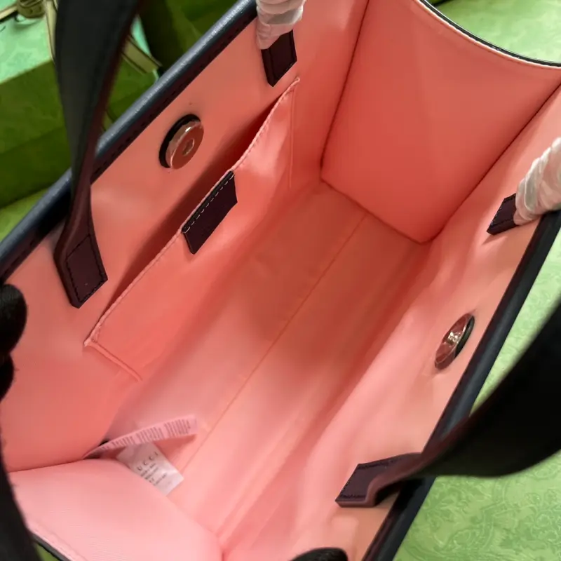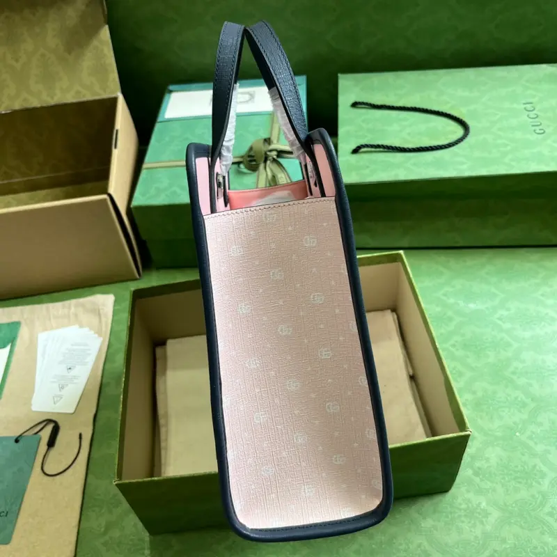 Children’s printed tote bag [comes with a full set of original green box packaging]. “The Jetsons” is set in the year 2062, presenting a dreamlike future space age full of magical props and whimsical gizmos, interpreting a world of technological utopianism. A variety of ready-to-wear and accessories are decorated with prints or embroidered details such as animals and robots, playfully combining characters related to “The Jetsons” and the Gbag logo. Light pink double G and star Supreme canvas, blue Supreme canvas piping, “The Jetsons” and all related characters and elements are the property of & TM HB. (s23) Nylon lining, internal open pocket, double handles (8.5 cm high) magnetic snap closure. Model: 605614. Dimensions: 28.5 (width) x 25 (height) x 11 cm (depth) Color: pink/Jason pattern pvc. Made in Italy