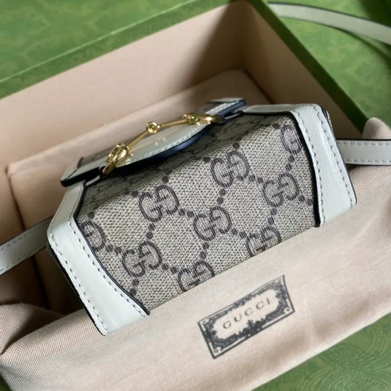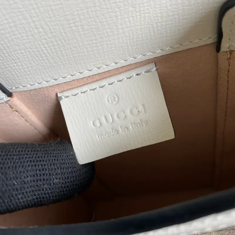 The latest 2021 model from the GG collection, featuring classic retro styling, is a rare piece from the collection that appeals to all ages. The Ophidia collection continues to grow, introducing stunning new creations each season. This handbag, part of the Epilogue collection, features a detachable shoulder strap. Its square, retro shape incorporates the brand’s signature striped webbing and Double G hardware, crafted with the brand’s signature Double G motif. Model No. 625615, Dimensions: 11.5cm wide x 17cm high, 4cm side width. Color: White/PVC.