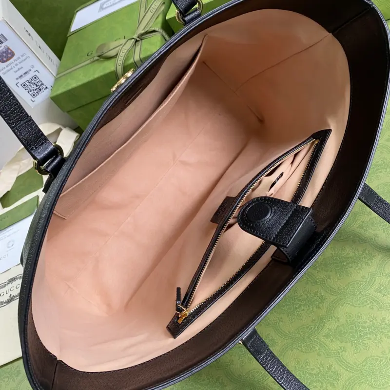 Comes with full original green packaging. New model introduction: Immersed in retro nostalgia, the Ophidia family welcomes a new member: the medium handbag. Its boxy shape evokes vintage design. Made of GG premium canvas, it’s embellished with red and green webbing, a signature element of the brand, paying homage to its equestrian roots. Ophidia Web Model: 631685. Dimensions: 38 x 28 x 14 cm. Color: Black, full leather.