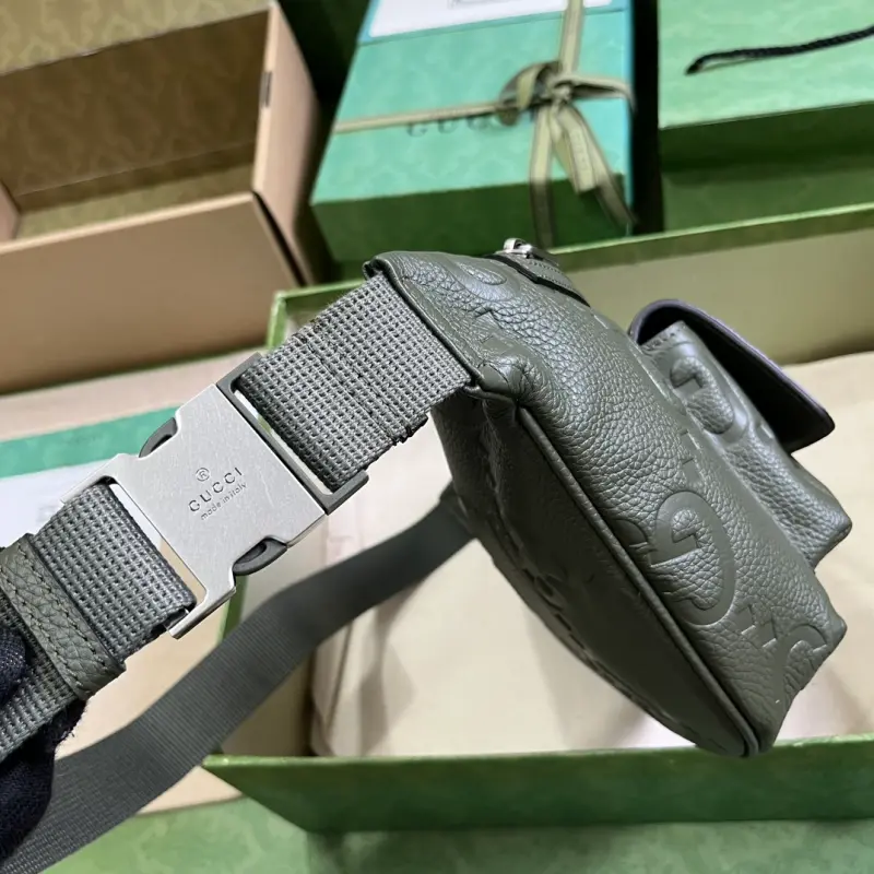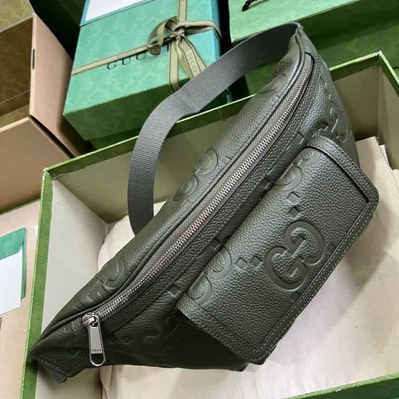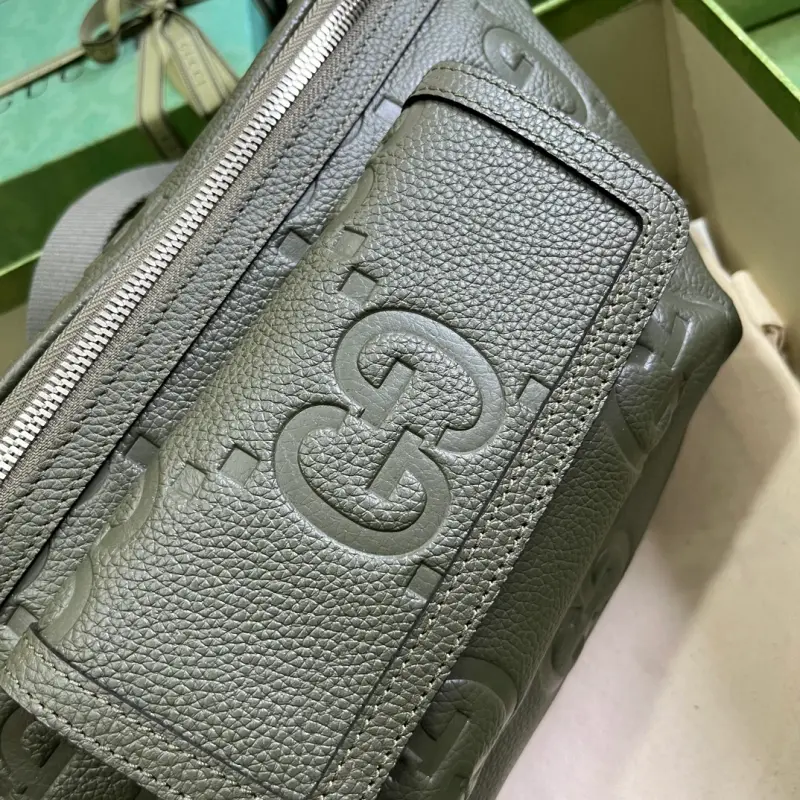[Includes full original green box packaging] Super Double G waist bag. The green Super Double G design makes a dazzling return in the Pre-Fall 2023 collection, appearing on a variety of leather travel luggage. A fresh take on Gbago Gbag’s initials, the Super Double G motif is presented in an oversized, striking silhouette, evoking the enduring allure of the brand’s iconic logo. Crafted from the brand’s signature leather, this waist bag can be worn cross-body for versatile carry options. Made of green Super Double G leather with a cotton and linen lining, it features a front magnetic pocket, a zipper closure, and an adjustable waist strap. Weight: approximately 0.56 kg. Model No. 645093. Dimensions: 28 cm (width) x 18 cm (height) x 8 cm (depth). Color: Green/Original G embossed leather.