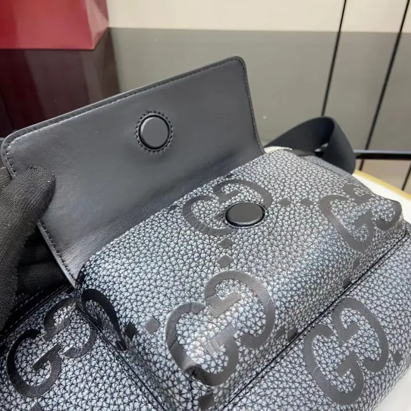 [Comes with a full set of original counter packaging] [New product] The 2025 early spring series continues the Super Double G design, ingeniously integrating a new grain texture. As a new interpretation of Mr. Gbago Gbag’s initials, the Double G pattern is presented in an oversized size, creating an enduring brand logo charm. This gray and black waist bag is crafted from classic cowhide leather and features a front pocket and an adjustable belt. Gray and black Super Double G grained cowhide leather, black cowhide piping, cotton and linen blend lining, front magnetic pocket, zipper closure, adjustable belt Model: 645093. Dimensions: 28 cm (width) x 18 cm (height) x 8 cm (depth) Weight: approximately 0.56 kg Color: Gray Grain Lychee/Original Leather. Made in Italy