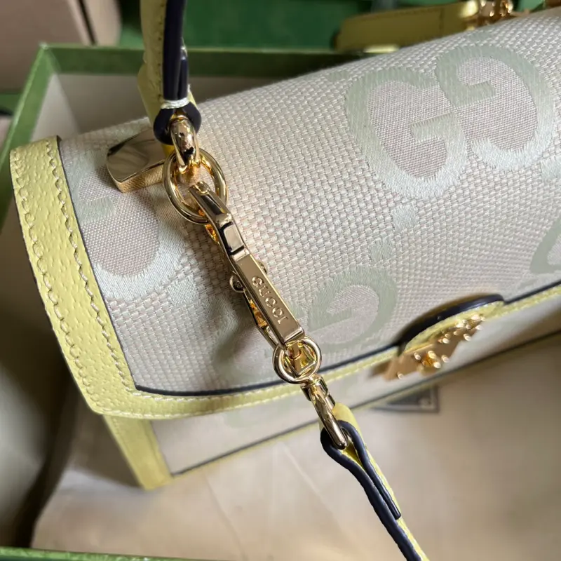 Ophidia Super Double G handbag, UKMBG 8480, cleverly incorporates the brand’s signature materials, embellishing this sleek yet sporty Ophidia handbag. The camel and banana yellow canvas pays tribute to timeless pieces and timeless design. The detachable shoulder strap allows for versatile styling, allowing it to be worn crossbody or on the shoulder. Made of camel and banana yellow Super Double G canvas with banana yellow leather trim and gold-tone Double G hardware, the bag features an interior with zippered and open pockets. It can accommodate a phone up to 167mm (length) x 78mm (width) x 9mm (depth), handles (10cm height), a detachable shoulder strap (48.5cm height), and a magnetic clasp. Weight: approximately 0.7kg. Model No. 651055. Dimensions: 25cm (width) x 17.5cm (height) x 7cm (depth). Color: Banana yellow leather/Big G canvas.
