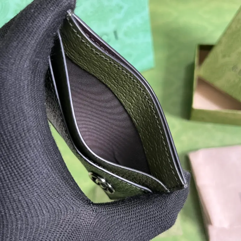 [Includes full original green box packaging] This GG Marmont card holder continues to update its color palette, adding more refined shades. With new color combinations and schemes, the brand reinterprets the classic GG Marmont collection with a modern perspective. This card holder is crafted from forest green leather with palladium-tone hardware featuring the brand’s signature logo. Made of forest green leather with palladium-tone hardware, featuring the Double G, and four card slots. Model No. 657588. Dimensions: 11 cm (width) x 7 cm (height). Color: Green/Full Leather.