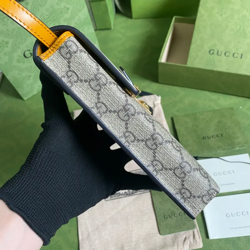 Comes with a full set of original green box packaging. A new addition to the classic King of Lock Chain Bag series! Featuring the iconic small lock, this stylish phone bag is crafted from genuine cowhide and G-print fabric in a three-in-one, elegant design. Model: 658229. Dimensions: 10*17.5*3.5cm. Color: Brown/PVC.