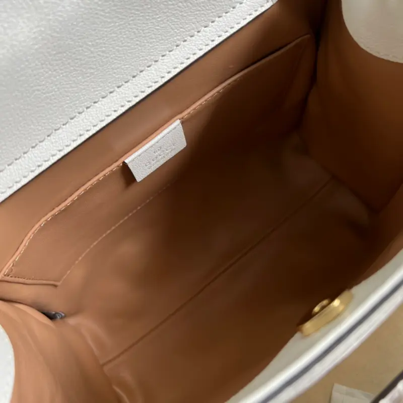 [Includes full original green box packaging] This medium-sized original leather bamboo tote bag from Gbag’s “Aria” collection offers a modern interpretation of a classic element. Bamboo, a Gbag signature, has been featured in various collections since the 1940s. After more than eight decades of evolution, this classic element is now reimagined in white leather for this small tote. The bag also features two interchangeable shoulder straps: a smooth leather strap for an elegant and timeless look, and a striped webbing strap for a strong brand identity. Model No. 660195. Dimensions: 27*24*11cm. Color: White/crocodile-grain leather.
