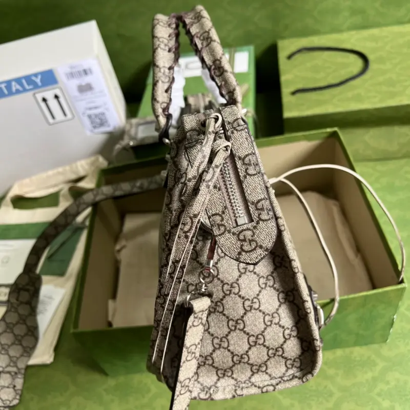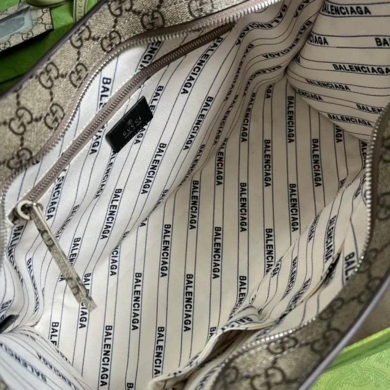 “Comes with full original green packaging.” The BL x Gbag collaboration, celebrating Gbag’s centennial, releases the new “Aria” collection. The striking combination of classic styles and monogram patterns from both brands is a welcome surprise. Model: 681695. Large size: 39 x 14 x 24 cm. Color: Brown/PVC.