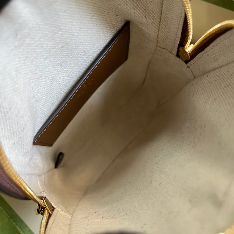 [Comes with a full set of original green box packaging] GG mini chest bag “Gbag Love March” The new fashion series selects brand collection elements, reinterprets the interlocking double G logo with geometric shapes, and presents a variety of unique items. Gold-toned accessories add a touch of elegant retro style to this item, showing a classic and timeless design style, just like the venue of this fashion show. This light brown leather mini handbag is paired with two interchangeable shoulder straps, the same color leather or striped ribbon to help you interpret different styles and looks. Model: 696016. Dimensions: 24*16*5cm. Color: Brown/PVC