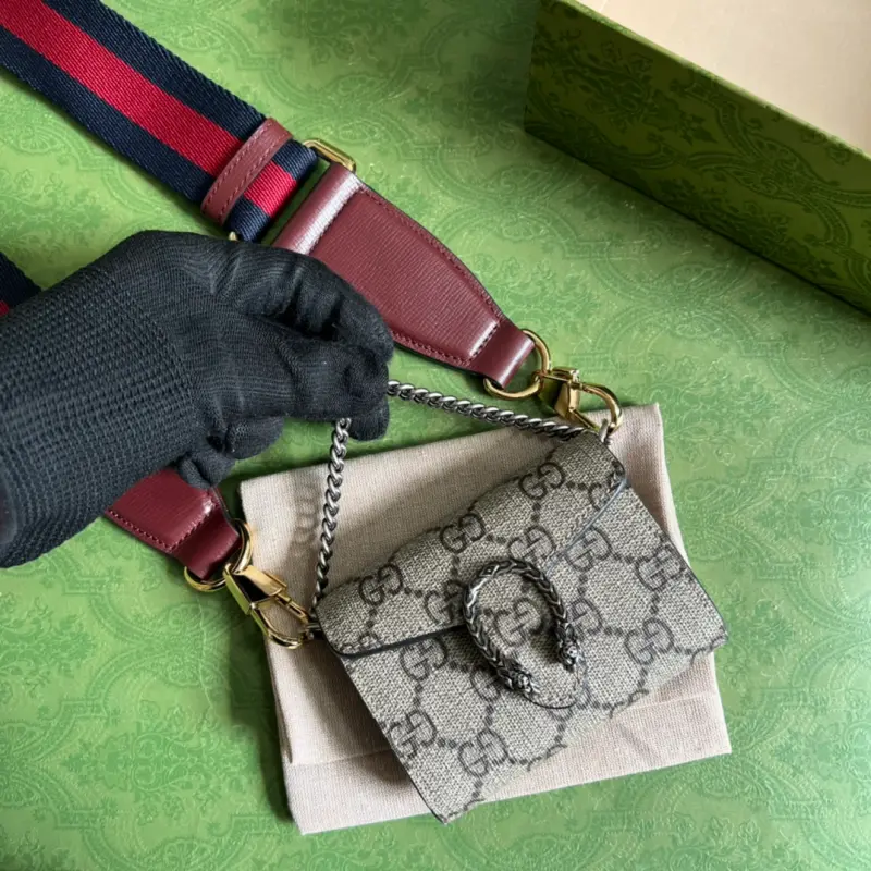 The Dionysus Ultra Mini Handbag, a striking piece from the Gbag Parade collection, features a vibrant, geometric pattern reminiscent of a jockey’s majestic uniform. Its name is inspired by the sand rings at a racecourse, or the area where saddlery is dressed before a race. This Dionysus Ultra Mini Handbag exudes elegance and charm. Model No. 696804. Dimensions: 10.5 x 8 x 3 cm. Color: Khaki/PVC.