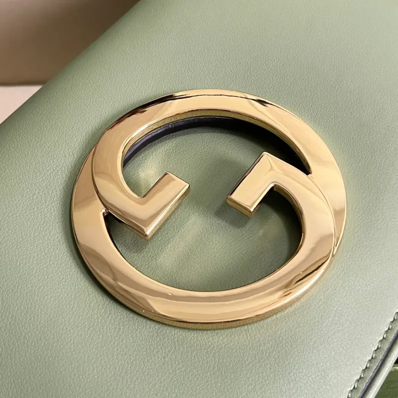 [Comes with full original green box packaging] Details of the underarm carry method (with a full hardware chain) of the Gbag Blondie Interlocking Light Green (original leather). I fell in love at first sight! I’ve been waiting so long for this new model! I love it! Used bags have always been my thing, and they’re super popular right now, mainly because they look so good! It’s absolutely amazing when I get it! The leather hardware is textured and substantial. It comes with two interchangeable shoulder straps, allowing you to carry it under the arm or crossbody, depending on your mood. I find both ways so retro and stylish, and they’re truly captivating! Among the many styles available recently, this is the only one that has really caught my eye. Model: 699268. Dimensions: 28 x 16 x 4 cm. Color: Light Green/original leather.