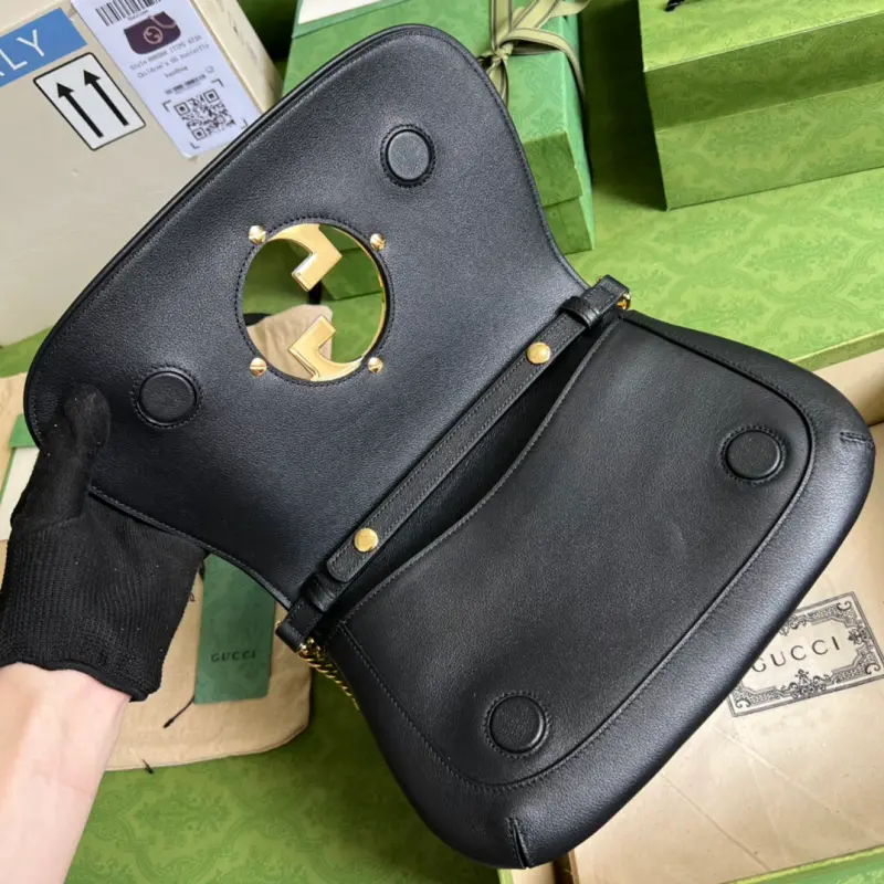 [Comes with full original green box packaging] Details of the underarm carry (with a full hardware chain) Gbag Blondie Interlocking Black (original leather) – I fell in love at first sight! I’ve been waiting so long for this new model! I love it! Used bags have always been my thing, and they’re super popular right now, mainly because they look so good! It’s absolutely amazing when I get it! The leather hardware is textured and substantial. It comes with two interchangeable shoulder straps, allowing you to carry it under the arm or crossbody, depending on your mood. I find both ways so retro and stylish, and they’re truly captivating! Among the many recent styles, this is the only one that has really caught my eye. Model: 699268. Dimensions: 28 x 16 x 4 cm. Color: Black/original leather.