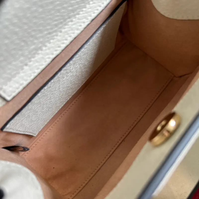 [Includes full original green box packaging] This small original leather bamboo tote bag from Gbag’s “Aria” collection offers a modern take on a classic. The bamboo element is a Gbag signature, appearing in various collections since the 1940s. After more than eight decades of evolution, this classic element is reimagined in black leather for this small tote. The bag also features two interchangeable shoulder straps: a smooth leather strap for an elegant and timeless look, and a striped webbing strap for a strong brand identity. Model No. 702732. Dimensions: 20*16*10cm. Color: White leather with a red strap.