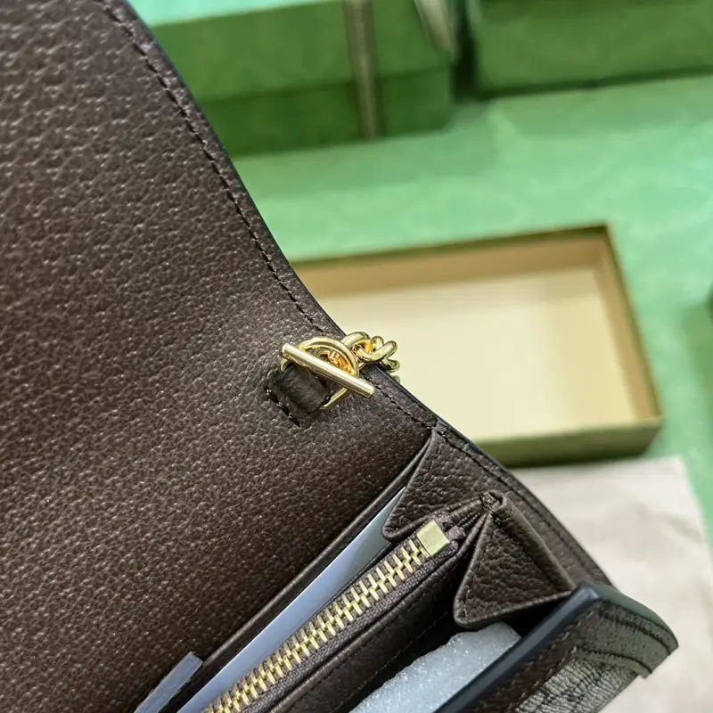 [Comes with full original green box packaging] Detail of how to carry a chain bag (with a full hardware chain) in the Gbag Blondie Interlocking Brown (original leather). I fell in love at first sight! I’ve been waiting so long for this new model! I love it! Vintage bags have always been my thing, and they’re super popular right now, mainly because they’re so beautiful! It’s absolutely amazing to get my hands on it! The leather is textured and substantial, and I can change it up anytime, anywhere. I can carry it under my arm or crossbody, depending on my mood. I find both ways so retro and stylish, and they’re truly captivating! Among the many styles available recently, this is the only one that’s really caught my eye. Model: 725219. Dimensions: 12.5 x 12.5 cm. Color: Brown/PVC.