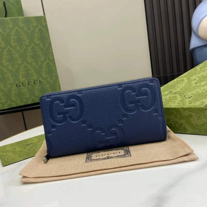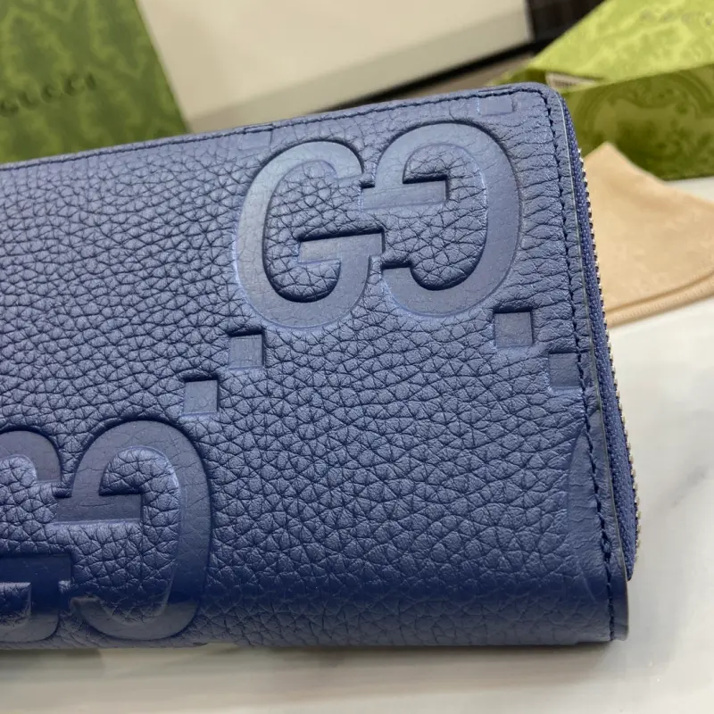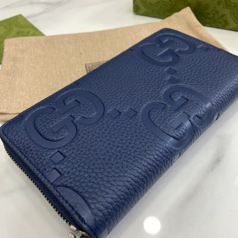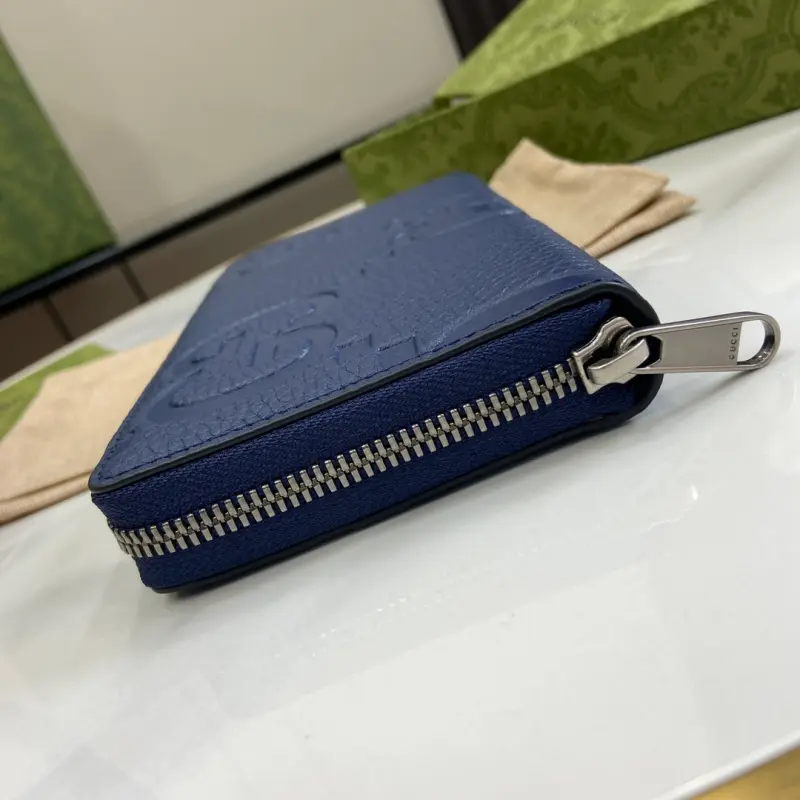 [Includes full original green box packaging] Super Double G zip-around wallet. The embossed GG print transforms a small everyday item into a stylish, everyday accessory. Innovative textures and finishes continue to shine in Gbag’s latest collections, showcasing vibrant energy and individual charm. This zip-around wallet is expertly crafted from blue leather and features an oversized Double G logo throughout. It is lined with blue Super Double G leather and a moir?? fabric lining. The interior features 12 card slots, three bill compartments, and a zippered coin pocket with zip closure. Model No. 739484. Dimensions: 19cm (W) x 10.5cm (H) x 2.5cm (D). Color: Blue/Original G Embossed Leather.