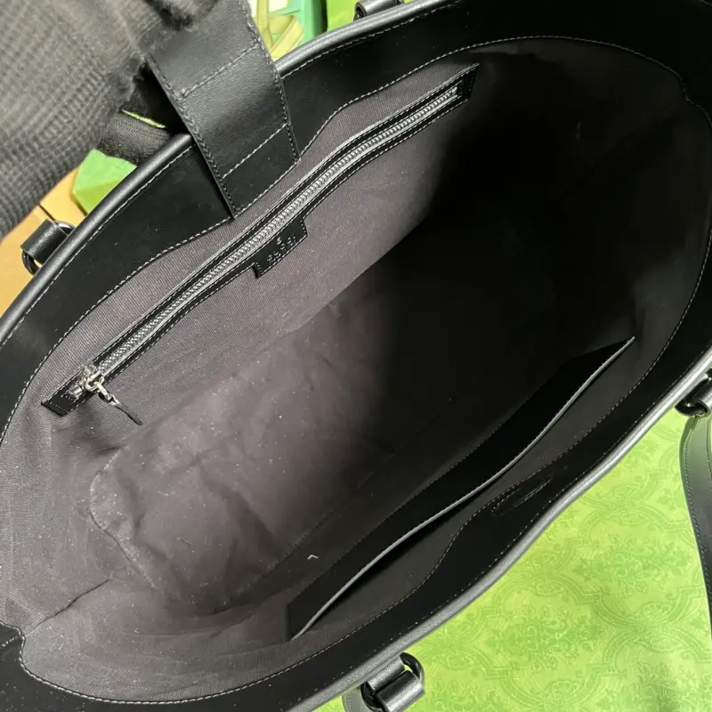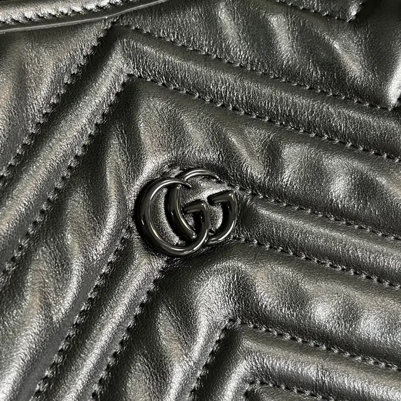 Comes with a complete set of original green box packaging. The GG Marmont handbag has become a symbol of the brand, with its recognizable quilted fabric and Double G hardware. This classic collection features new silhouettes each season, reflecting Gbag’s current aesthetic. This large tote features a V-shaped base, highlighting the tonal logo hardware. Made of black quilted V-shaped leather, black brass hardware with a ceramic-effect finish, and a cotton and linen lining with Double G detailing. Interior: one zippered pocket and a 23cm leather handle. Model No. 739684. Dimensions: 38.5cm (width) x 29cm (height) x 14cm (depth). Color: Black/Original Leather.