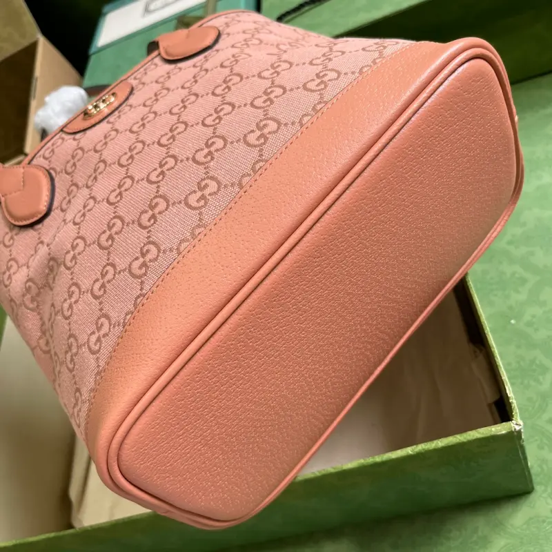 [Comes with a full set of original green packaging] Ophidia series GG small tote bag. The brand’s iconic fabric GG canvas continues to add luster to classic items. As a symbol of the Ophidia series bags, GG canvas is presented in a new and eye-catching pink this season, complementing the rose gold hardware. Pink leather piping makes this small tote bag more charming. Pink GG canvas, pink leather piping, rose gold hardware, suede texture, microfiber lining double G, interior: detachable zipper clutch top handle. Model: 742102. Dimensions: 25 (width) x 22 (height) x 12cm (depth) Color: pink leather/pink canvas. Made in Italy