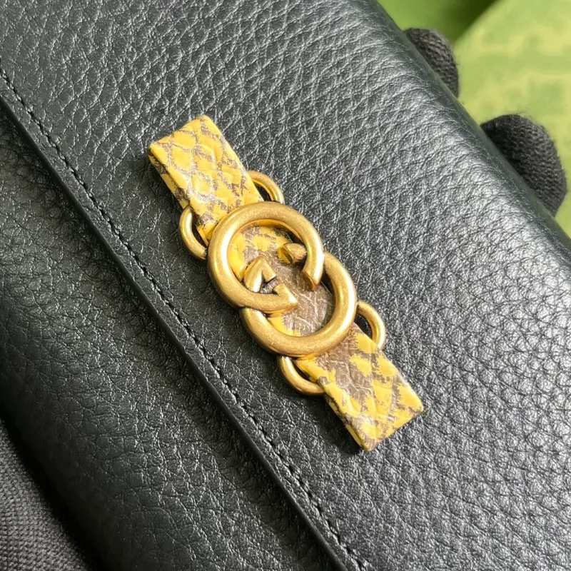 Model No.: 750461. Dimensions: 19cm (W) x 10cm (H) x 3.5cm (D). Color: Black/Original Leather. Made in Italy.