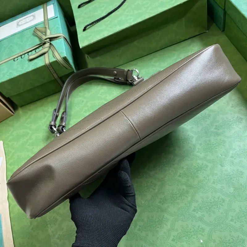 Comes with a complete set of original green box packaging. This Gbag Blondie medium tote bag is ingeniously embellished with a circular interlocking GG design inspired by a symbolic element from the brand’s archives. This Gbag Blondie tote features a top handle and a chain shoulder strap, and is prominently embellished with the brand’s signature crafted from a leather patch. Made of gray leather with a cotton and linen lining, it features a circular interlocking GG leather patch. The interior includes three main compartments and a zippered pocket, a top handle with a 20cm drop, and a chain shoulder strap with a 42cm drop. Weight: Approximately 1.2 kg. Model No. 751516. Dimensions: 34.5cm (length) x 41cm (width) x 8cm (depth). Color: Gray/original leather.
