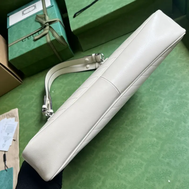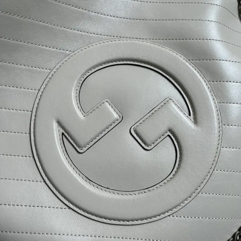 Comes with a complete set of original green box packaging. This Gbag Blondie medium tote bag is ingeniously embellished with a circular interlocking GG design inspired by a symbolic element from the brand’s archives. This Gbag Blondie tote features a top handle and a chain shoulder strap, and is prominently embellished with the brand’s signature crafted from a leather patch. It features white leather and a cotton and linen lining, a circular interlocking GG leather patch, and an interior with three main compartments and a zippered pocket, a top handle (20 cm drop), and a chain shoulder strap (42 cm drop). Weight: Approximately 1.2 kg. Model No. 751516. Dimensions: 34.5 cm (length) x 41 cm (width) x 8 cm (depth). Color: White/original leather.