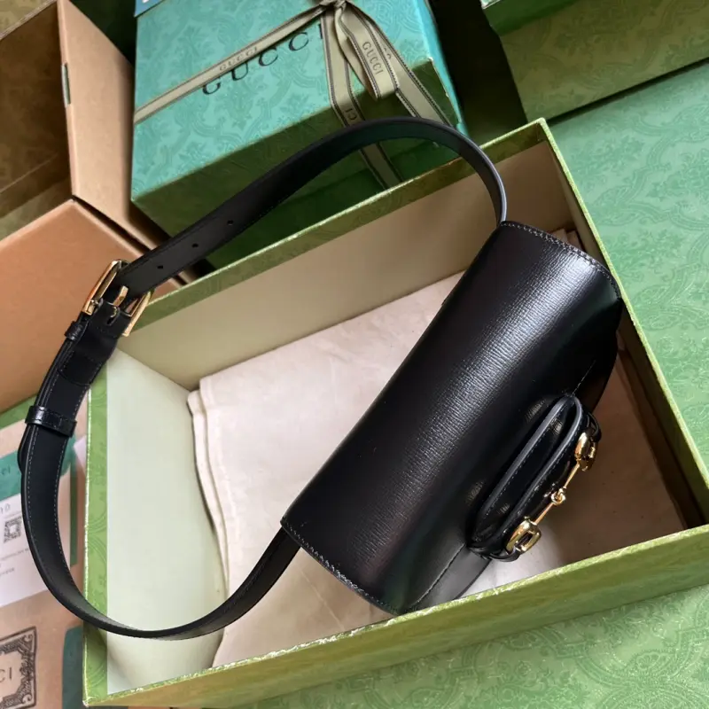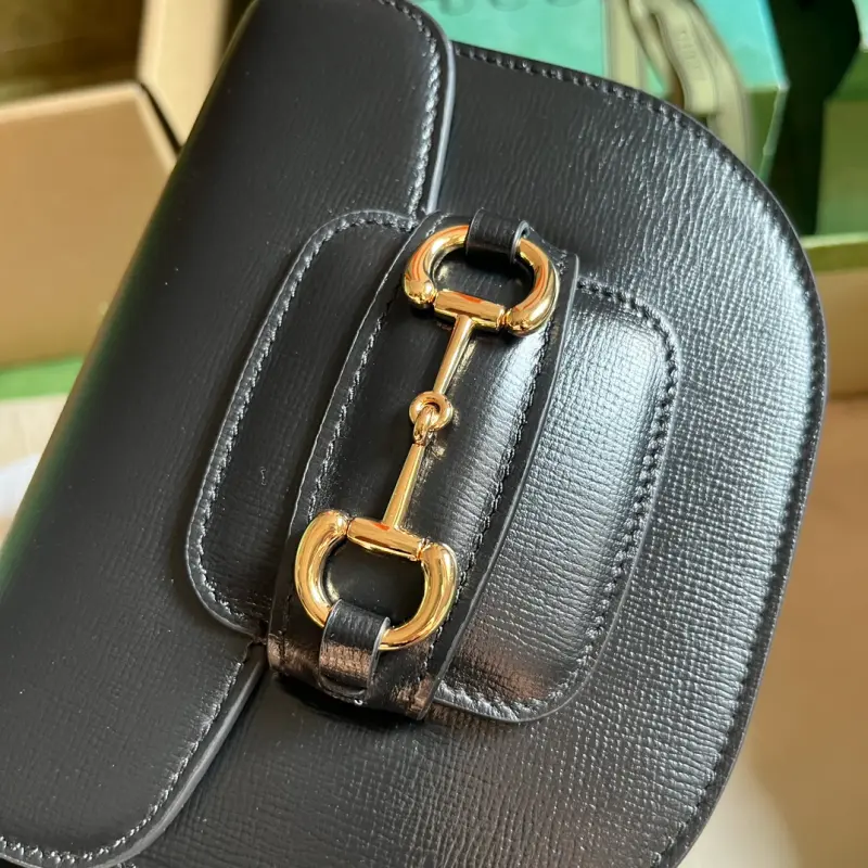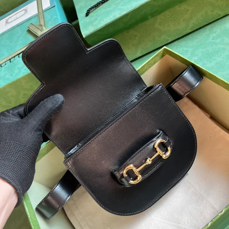 [Comes with a full set of original green box packaging] Gbag Horsebit 1955 series semi-circular waist bag. The new series presents the Gbag Horsebit 1955 series waist bag, which combines versatile characteristics and practical functions. This waist bag is ingeniously crafted with classic black and ebony GG Supreme canvas. The flap closure and adjustable sliding belt make the whole design more rounded. Black and ebony GG Supreme, black leather piping, gold-tone accessories. As a selected item with a Gbag Tag, this product supports NFC technology to help you verify authenticity and enjoy a digital innovation experience. Cotton and linen blend lining horsebit buckle, interior: 2 compartments, 1 card compartment, detachable and adjustable belt. Model: 760198. Dimensions: 16 (width) x 13 (height) x 6.5cm (depth) Color: Black/Original Leather Weight: Approximately 0.4 kg