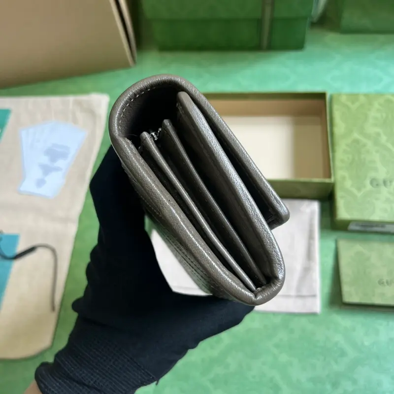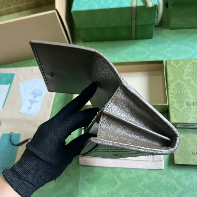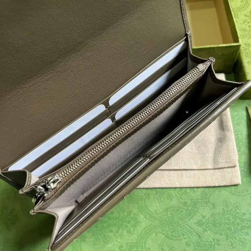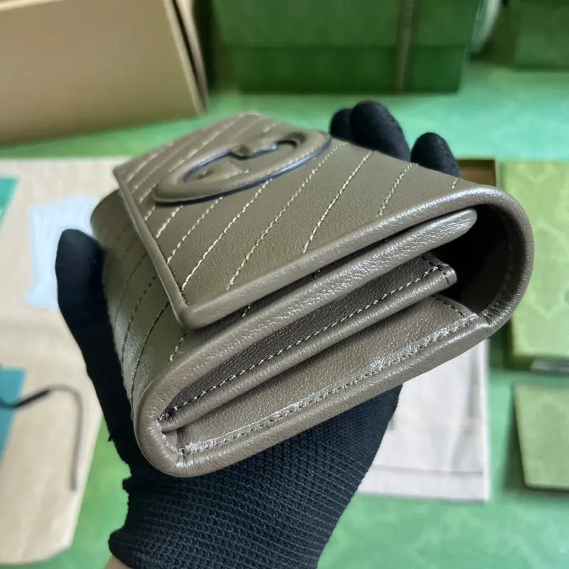 [Includes full original green box packaging] Gbag Blondie series long wallet. The Gbag Blondie collection features one of the brand’s boldest patterns paired with tonal leather, exuding a subtle and understated vibe. The collection ingeniously incorporates the circular, geometric Interlocking GG logo, showcasing Gbag’s modern aesthetic. This long wallet features a prominent Interlocking GG detail. Crafted from gray leather with a taffeta lining, it features a circular Interlocking GG leather patch. The interior includes twelve card slots, two bill compartments, two separate interior compartments, and a zippered coin pocket with a snap closure. Weight: Approximately 0.18 kg. Model No. 760302. Dimensions: 10 cm (length) x 19 cm (width) x 3.5 cm (depth). Color: Gray/original leather.