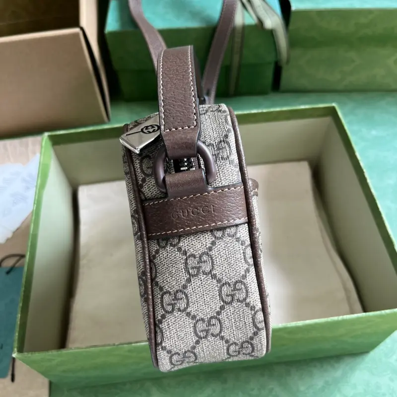 Comes with a complete set of original green box packaging. GG canvas is a coveted brand, embodying a sporty, contemporary aesthetic. The iconic logo is cleverly incorporated into the shimmering, durable fabric, giving a contemporary twist to classic men’s pieces from the Fall/Winter 2023 collection, reimagining them with style and allure. This mini shoulder bag, inspired by the collection, is expertly crafted from brown GG canvas. It features brown GG canvas trim, palladium-tone hardware, and a nylon lining. The interior includes one snap-fastening pocket, one exterior pocket, an adjustable shoulder strap (50 cm drop), and a zipper closure. Model No. 760342. Dimensions: 22.5 cm (width) x 14 cm (height) x 5 cm (depth). Color: Brown/PVC.