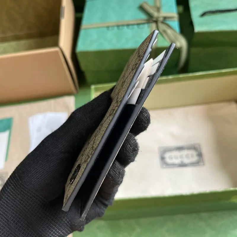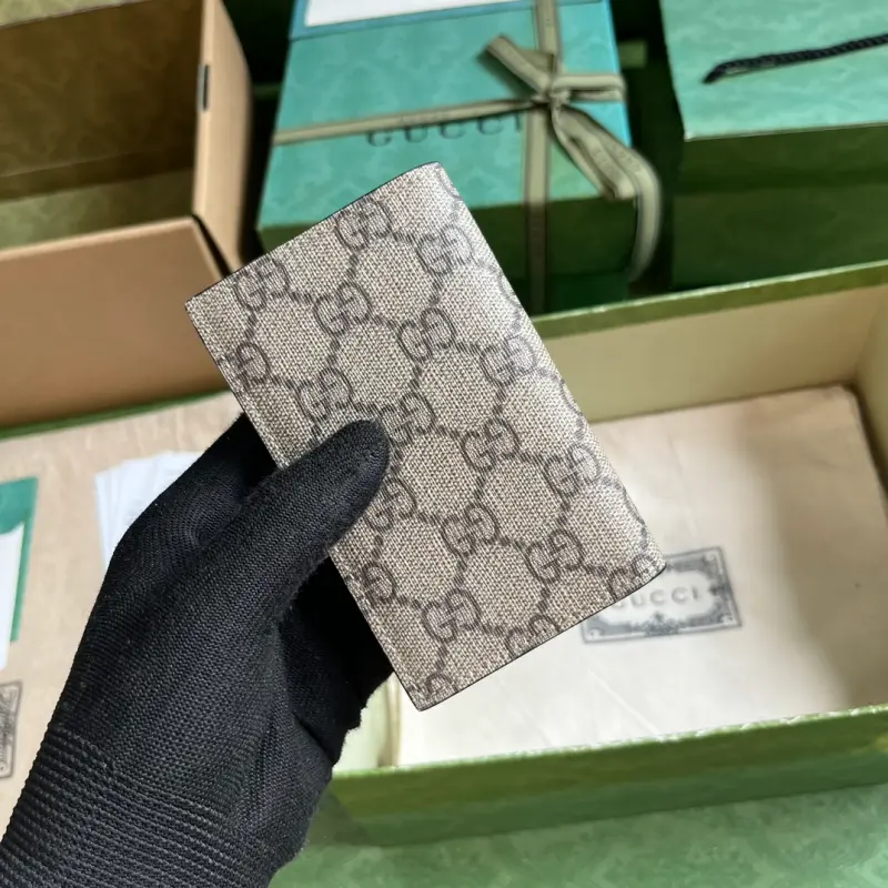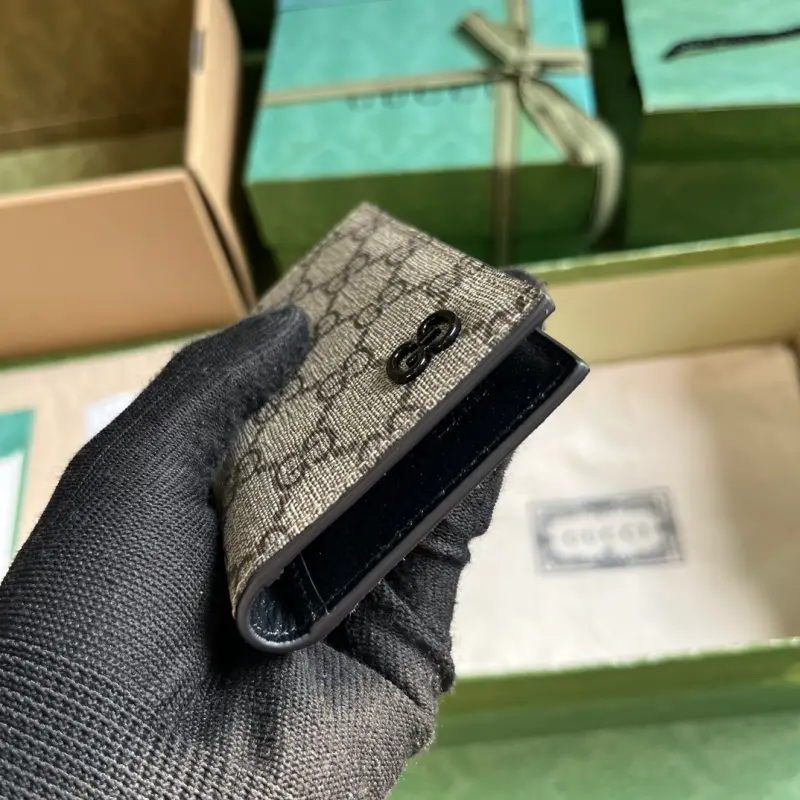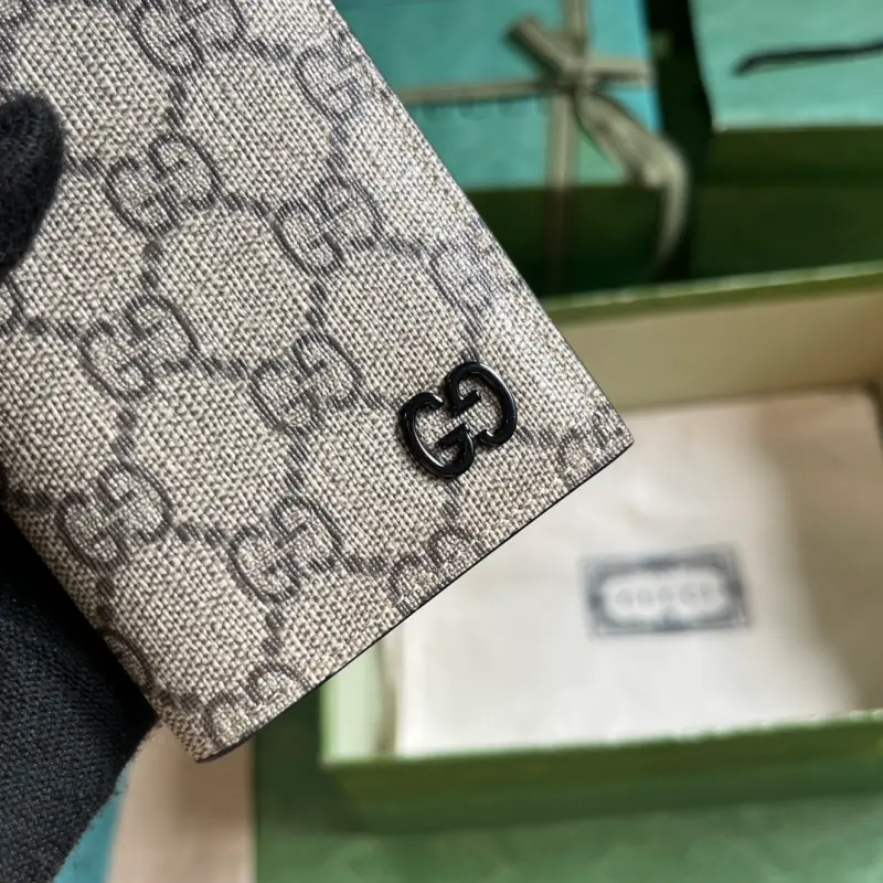 [Includes full original green box packaging] A long card holder with GG details. Gbag’s iconic GG detailing cleverly blends with vibrant colors. This long card holder is expertly crafted from GG Supreme canvas with contrasting yellow details, adding a subtle touch of contrast to this compact everyday accessory. Crafted from beige and ebony GG Supreme canvas with yellow leather trim, brass hardware, a yellow ceramic-effect finish, and a moir?? fabric lining, the GG details feature within the interior, which includes eight card slots. Model No. 768249. Dimensions (open): 12 (L) x 15 (W) cm. Dimensions (closed): 12 (L) x 7.5 (W) cm. Color: Black/PVC.