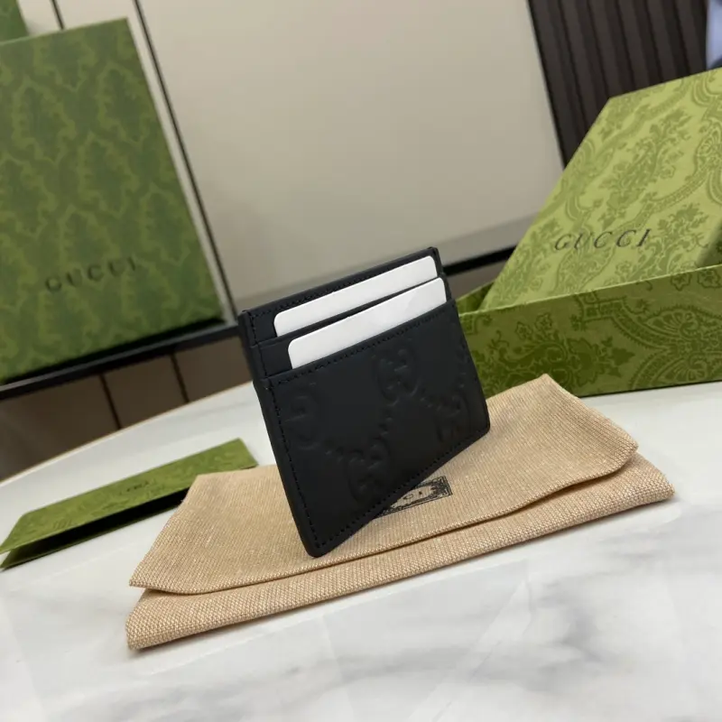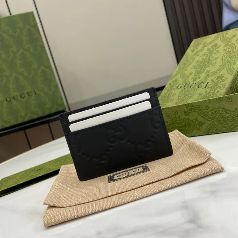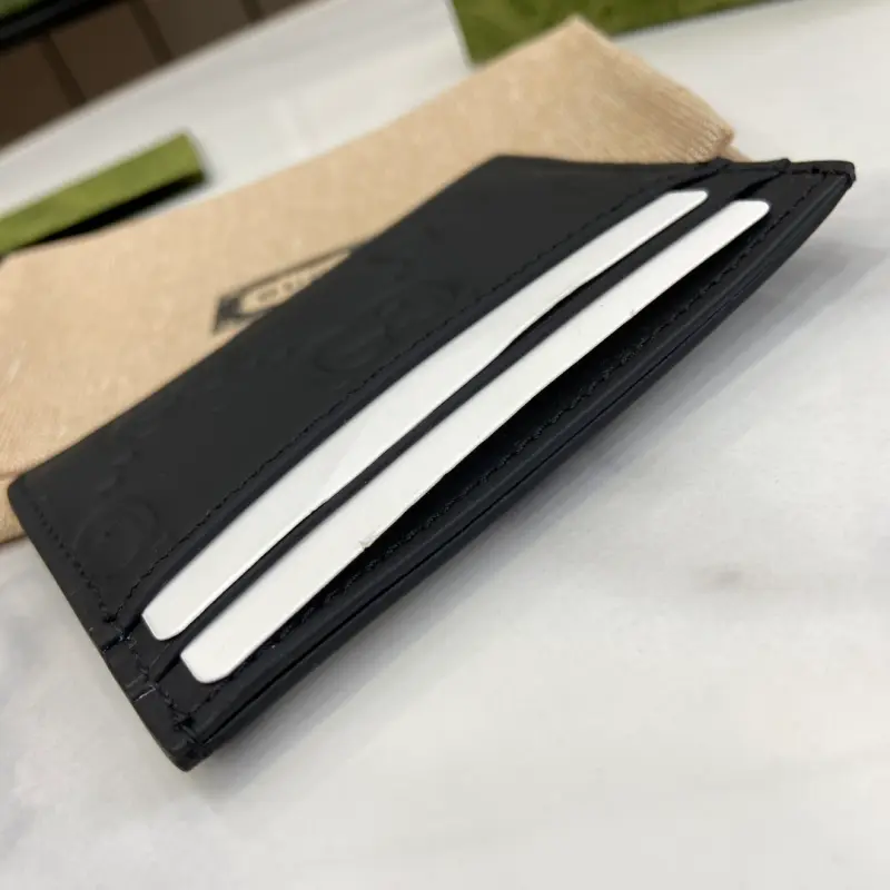Comes with a complete set of original green box packaging. This collection of men’s card holders crafted from black rubber-effect leather brings a fresh, modern aesthetic to everyday accessories. Introduced in the Cruise 2024 collection, this essential piece with four card slots is given a modern twist. Black GG rubber-effect leather with a moir?? fabric lining and four card slots. Model No. 771315. Dimensions: 7 cm (length) x 11 cm (width). Color: Black/G embossed leather.