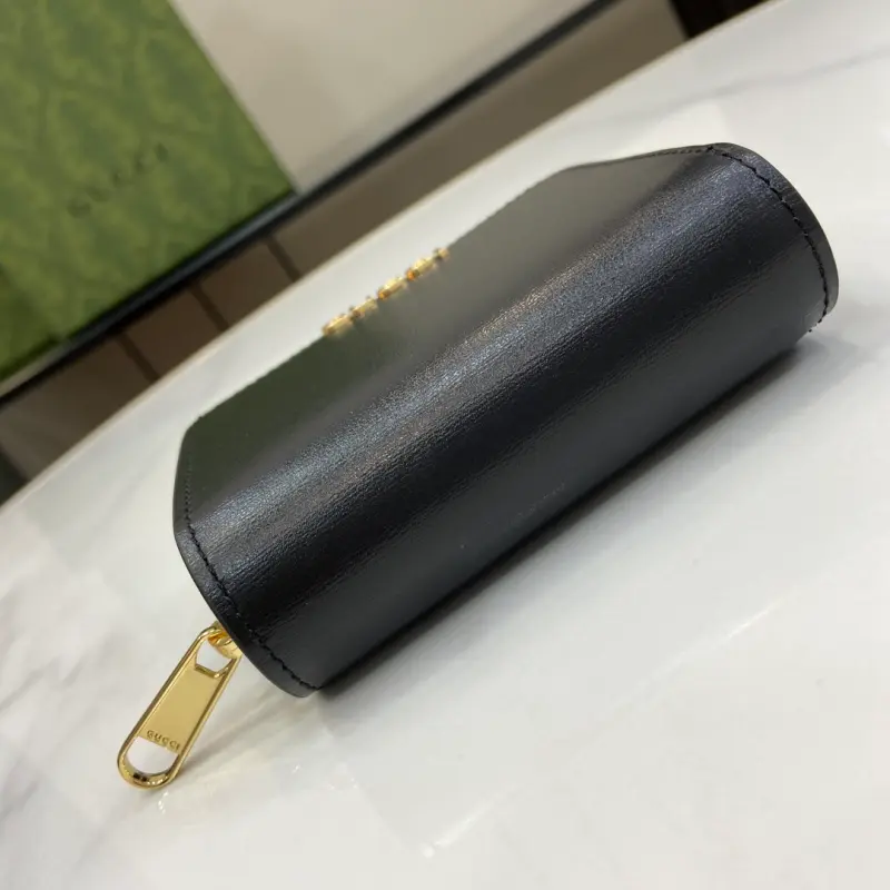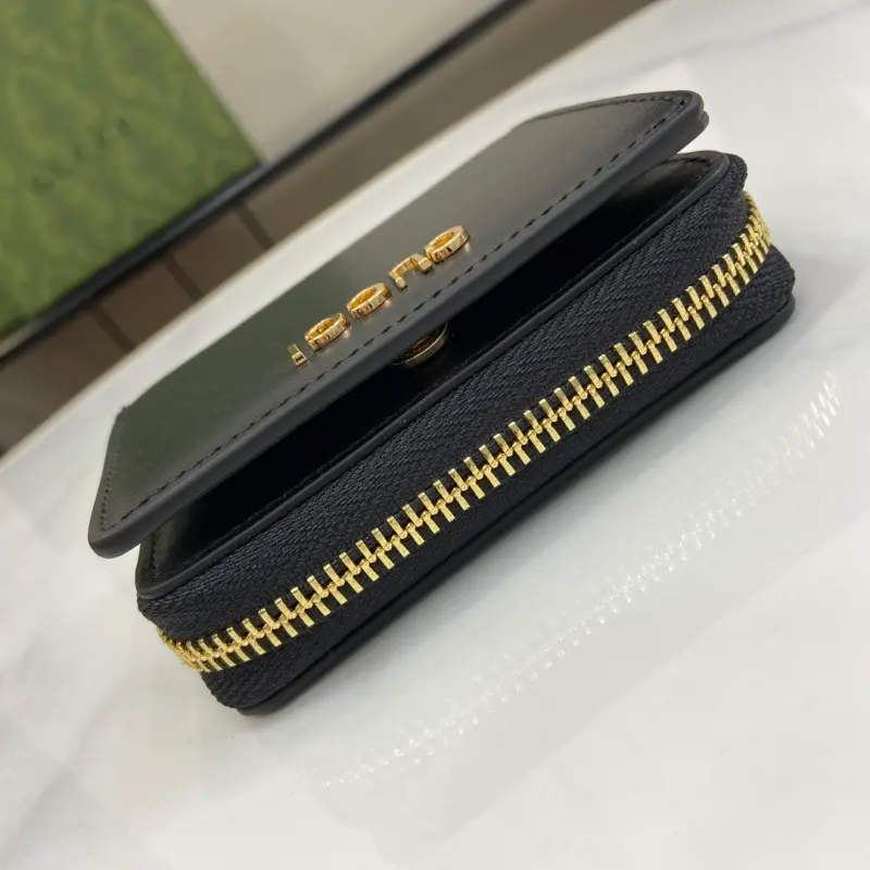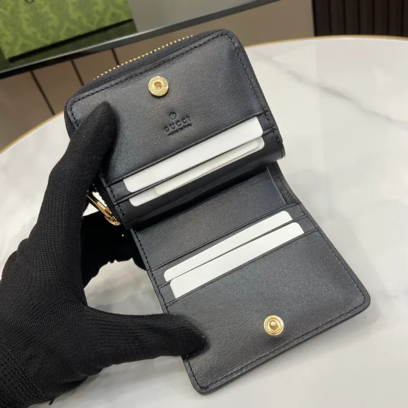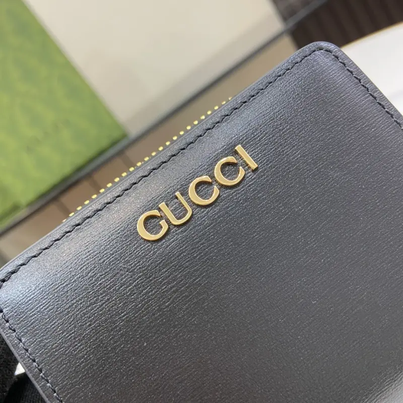 Mini wallet with the handwritten Gbag logo. This small travel accessory has become an integral part of the Gbag leather goods collection, embodying the brand’s design roots in travel. Logos inspired by the brand’s founder’s initials imbue the design with an elegant and timeless signature. This mini wallet is expertly crafted from black leather and embellished with a gold-tone effect handwritten Gbag logo detail. Black leather, gold-tone hardware, taffeta lining, and handwritten Gbag logo detail. Interior: one zip pocket, six card slots, one bill compartment, zip closure. Weight: approximately 0.14 kg. Model No. 772639. Dimensions closed: 9 (length) x 11 (width) x 2.5 cm (thickness). Dimensions open: 9 (length) x 18 (width) x 2.5 cm (thickness). Color: Black/Original Leather.