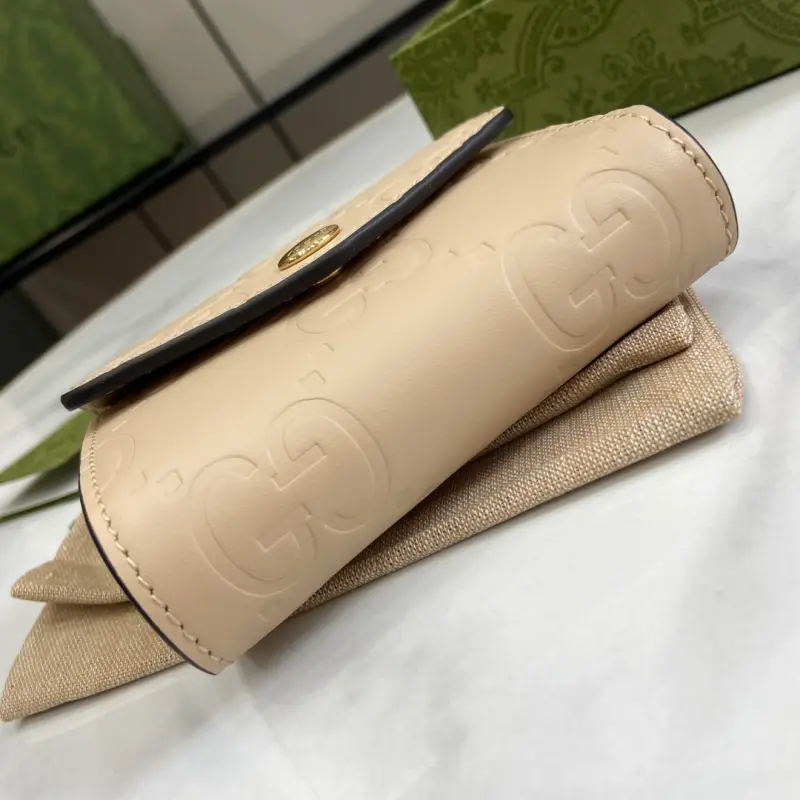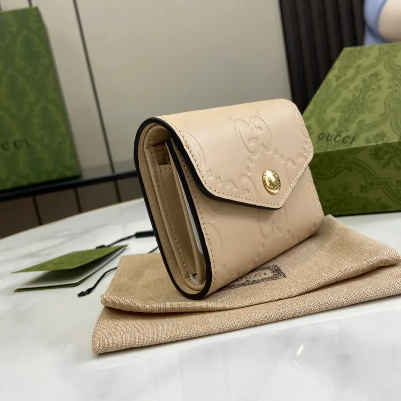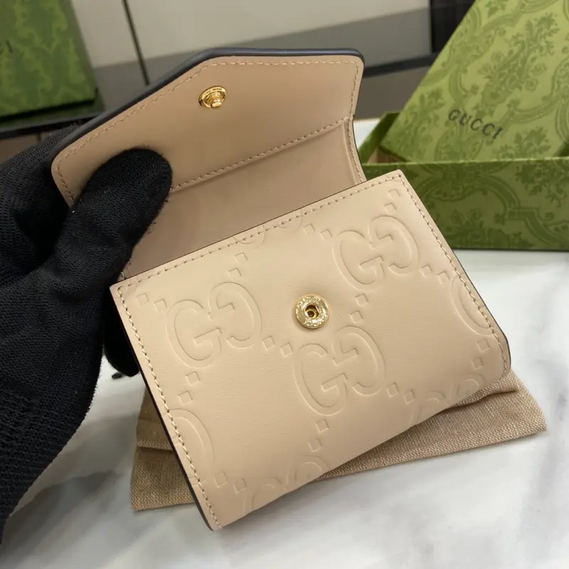 [Comes with a full set of original green box packaging] [New] GG medium wallet. The initials of the brand’s founder, Mr. Gbago Gbag, add color to leather accessories, integrating modern small leather goods with Gbag’s profound design heritage. The classic GG pattern with texture and luster injects a unique style into this elegant black medium wallet. Black GG leather, cloud fabric lining, interior: four card compartments, a zipper pocket and a banknote compartment, double snap closure. Model: 772793. Dimensions when open: 11 (length) x 24.5 cm (width) Dimensions when closed: 9.5 (length) x 11 (width) x 3 cm (thickness) Color: black/embossed G original leather. Made in Italy