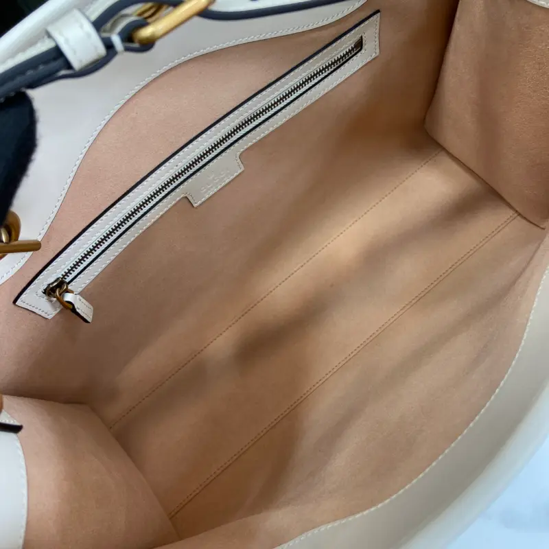 [Comes with a full set of original green box packaging] [New Product] GG Marmont series large tote bag. The GG Marmont series continues to shine in the 2024 Spring and Summer series. This large tote bag is crafted with white quilted leather, with a timeless double G logo and gold-tone hardware, charmingly interpreting the brand’s classics. White quilted V-shaped leather, antique gold-tone hardware, suede material, microfiber lining, double G, open inner pocket, adjustable leather handle. Model: 779724. Dimensions: 34x 28x 12.5cm. Color: White/original leather. Made in Italy