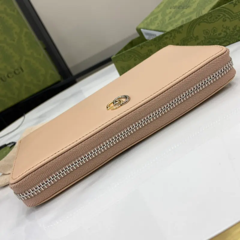[Comes with a full set of original green box packaging] [New] GG Marmont series wallet. The brand’s iconic pattern has been transformed into a symbolic element that is rich in variation yet classic, adding color to the new series. On this wallet, the two-tone iconic double G logo is vividly embellished on the bag body, contrasting with the beige and ebony GG Supreme canvas and light beige leather. Beige and ebony GG Supreme canvas, light beige leather piping, cloud pattern fabric lining, two-tone double G, a zipper pocket and a bill compartment. Model: 790057. Dimensions: 19 (length) x 10 (width) x 2.5 cm (thickness) Color: light beige/original leather. Made in Italy