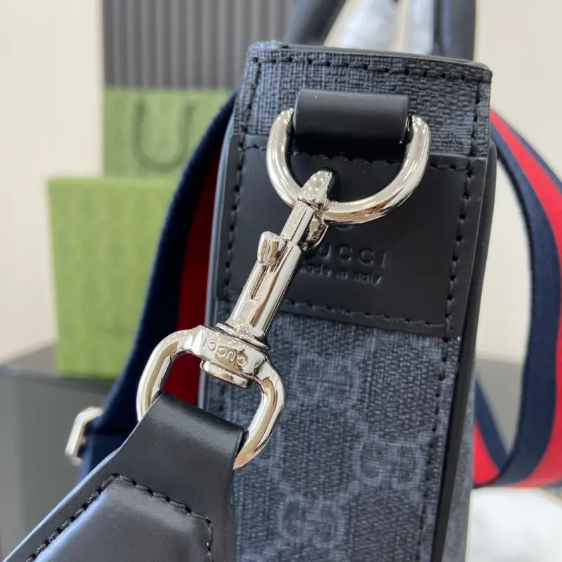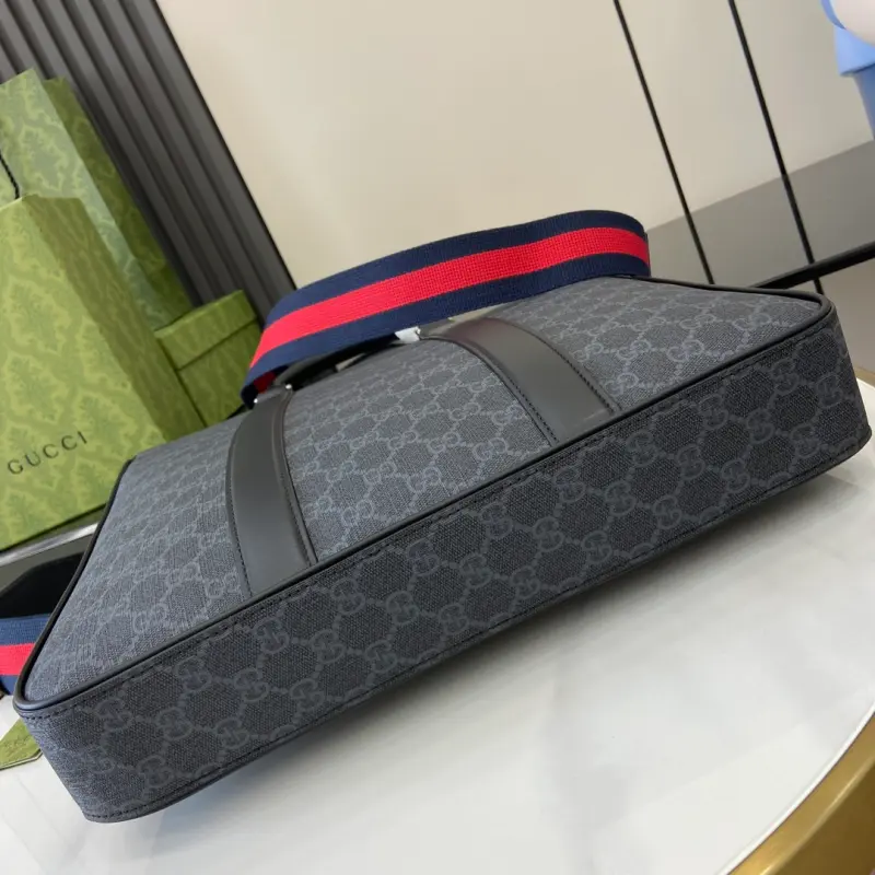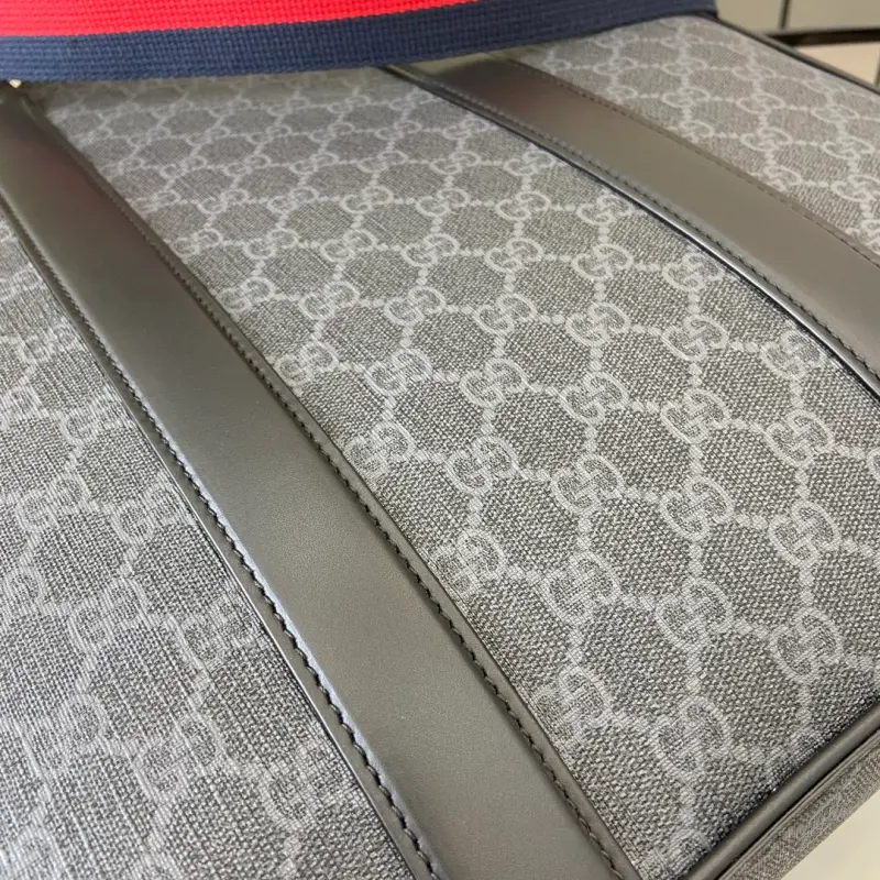 [Comes with a full set of original green gift bags] [New] Medium GG Tote Bag. Selected bags such as crossbody bags, briefcases and tote bags interpret new styles with practical details. The iconic design element GG pattern is integrated into the lightweight structure with classic colors, injecting timeless style into each item. This tote bag is crafted from black GG Supreme canvas and is paired with a web strap to add a bright look. Black GG Supreme canvas, black leather piping, red and blue web, cotton and linen blend lining, interior: 1 zipper pocket and 1 flap pocket, handle height: 10 cm, detachable and adjustable canvas shoulder strap (55 cm high); length can be adjusted between 77 cm and 122 cm, magnetic buckle closure. Model: 794918. Dimensions: 36.5 (width) x 38 (height) x 6.5 cm (depth) Color: black/pvc. Weight: approximately 1.2 kg