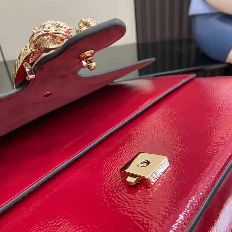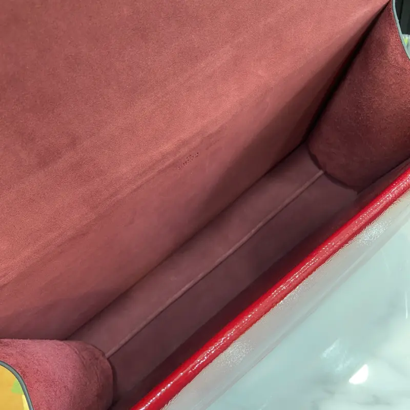 [Comes with a full set of original green box packaging] [New Product] GG Dionysus series large shoulder bag. Gbag Creative Director Sabato de Sarno recreates the classic Dionysus series large-sized shoulder bag. This innovative work is made of fashionable red patent leather, with a double tiger head lock and a flap design. The sliding chain can be freely adjusted to the length, allowing you to create different styles and show a modern style. Red patent leather, silver-tone accessories, the sliding chain strap can be adjusted to a shoulder strap with a height of 26 cm, or a top handle with a height of 43 cm, double tiger head lock, weight: approximately 1.3 kg. Model: 795003. Dimensions: 42 (width) x 28 (height) x 12 cm (depth) Color: red/patent leather original leather. Made in Italy