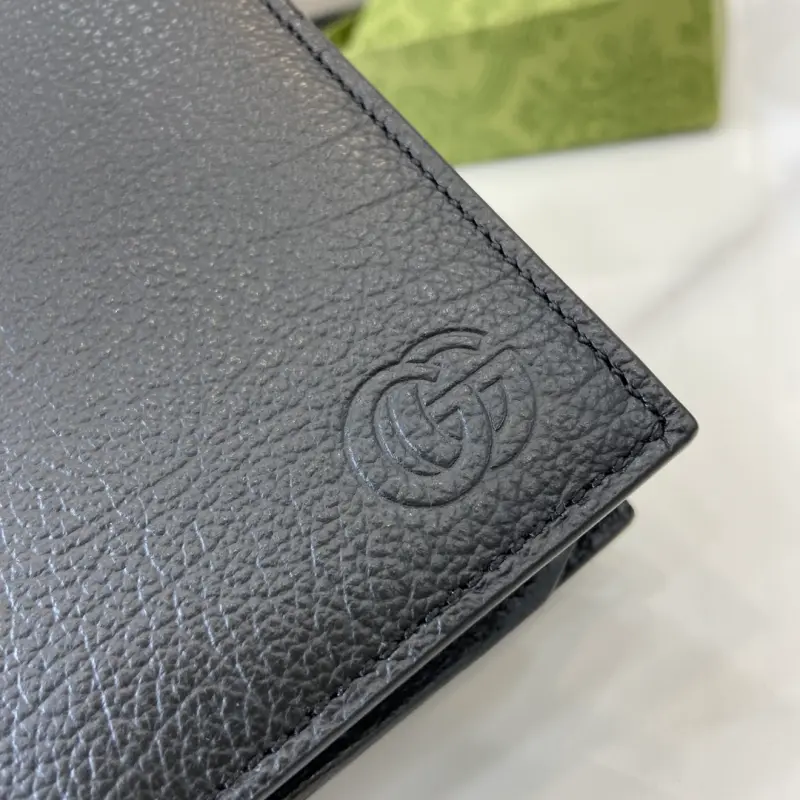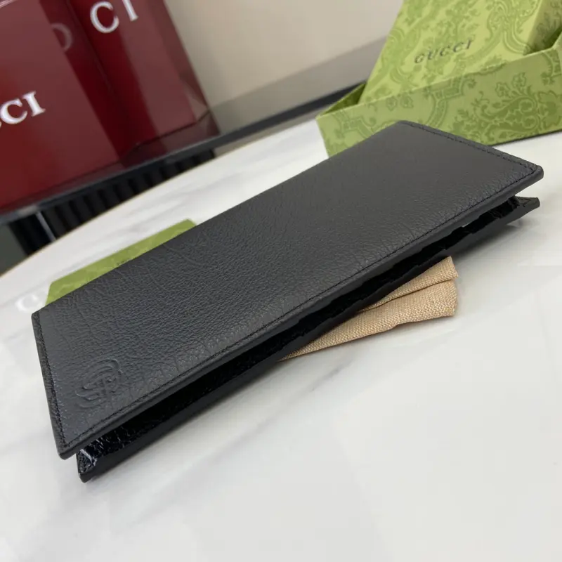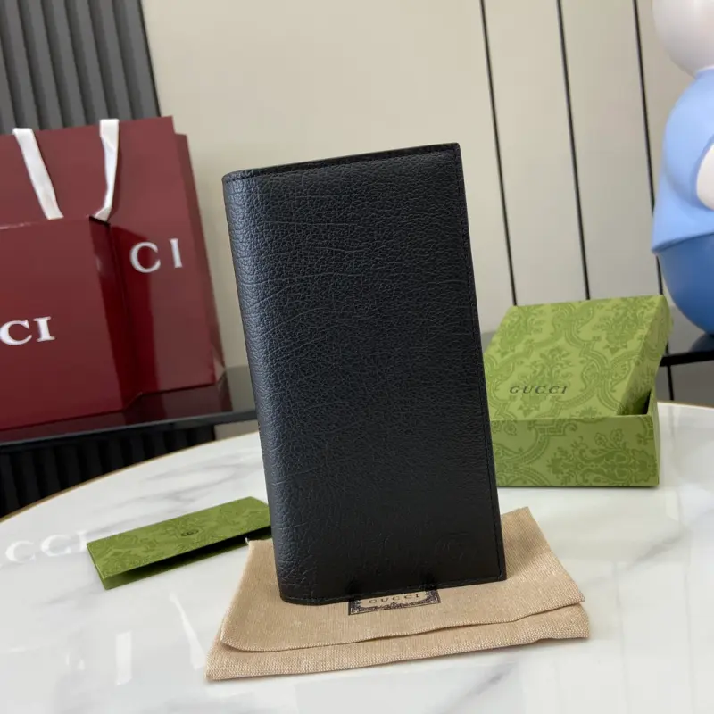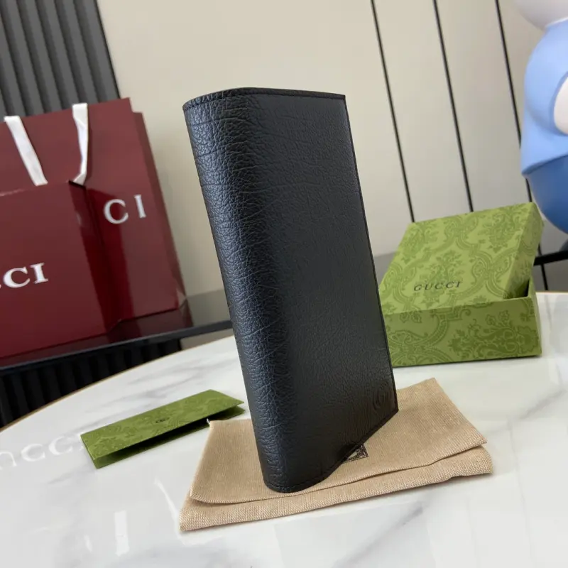 Wallet with GG detailing (comes with the original green box). Gbag’s small leather accessories push the boundaries of design, constantly reinterpreting classic pieces in unique ways. This men’s wallet expertly combines the classic GG Supreme design with GG hardware, creating a sophisticated, modern accessory. Crafted from beige and ebony GG Supreme canvas with yellow leather trim, brass hardware, and a yellow ceramic-effect finish, it features a moir?? fabric lining with GG detailing. Interior: card compartment, coin pouch, and one bill compartment. Model No. 795331. Dimensions: 10cm (width) x 19cm (height). Color: Black/full leather.
