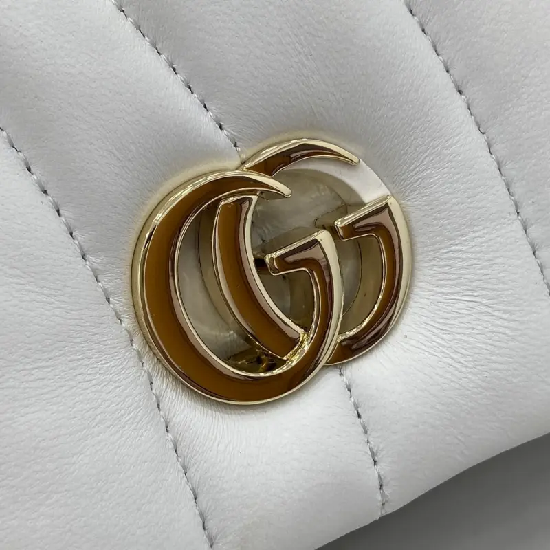 [Comes with a full set of original green box packaging] [New] GG Milano series mini shoulder bag During Milan Fashion Week, the GG Milano series handbag created by the brand’s creative director Sabato De Sarno debuted on the 2024 Fall/Winter fashion show, paying tribute to Milan, the city that inspired the design. This handbag is ingeniously integrated with the new double G styling accessories and is made of soft and silky quilted fluffy leather. The chain strap gives this bag more styling potential; it can be easily worn on the shoulder or cross-body. White fluffy leather with shiny light gold-tone hardware. White leather lining. Double GD-shaped ring buckle. One zipper pocket with GG pendant, one open pocket and one lipstick storage compartment. Handle height 6.1 cm. Detachable chain shoulder strap (approximately 50 cm high). Spring clip buckle. Weight: approximately 0.5 kg. Model: 806017. Dimensions: 21 (length) x 12.5 (width) x 4.6 (thickness). Color: white full leather/original leather. Made in Italy