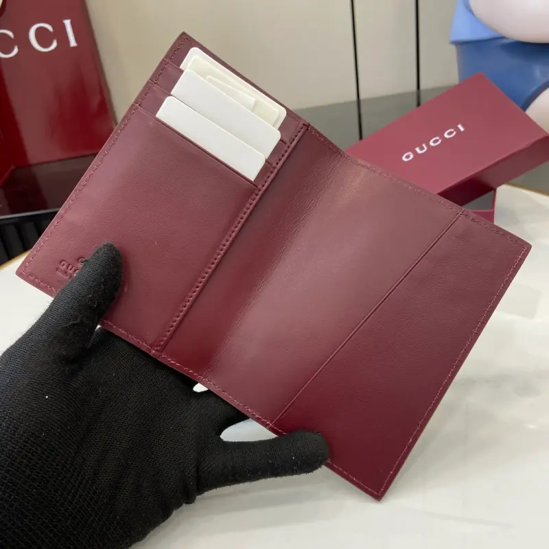 Comes with a complete set of original green box packaging. This GG mini wallet features a red cat detail. A playful cast of animals, including cats, dogs, and pandas, adds a finishing touch to a selection of small accessories crafted from coated fabric with the new GG monogram. These playful motifs are expertly crafted using screen printing and leather patchwork. The red cat details bring a vibrant touch to this mini wallet. The wallet features beige and dark brown coated fabric with the new GG monogram, a leather patch with a red cat detail, and a taffeta lining. The interior includes four card slots and a passport pocket. Closed dimensions: 14″ (length) x 10″ (width). Open dimensions: 14″ (length) x 19″ (width). Weight: Approximately 0.072 kg. Model No. 810072. Color: Brown PVC with red red cat/original leather.